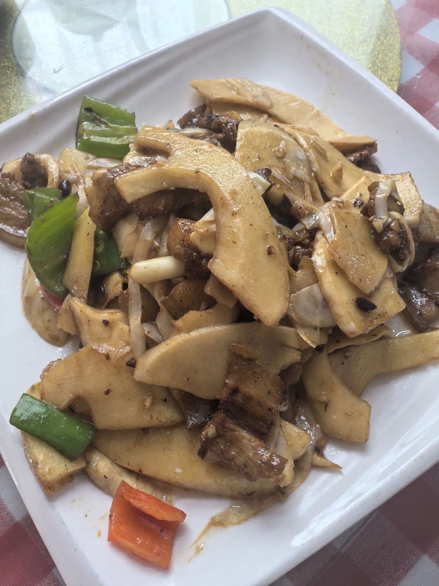 其次,这份鲜笋炒五花肉,也改变了我对竹笋的认识,因为以前吃的竹笋大多都是酸笋干笋等形式,这次吃到当地的鲜竹笋,居然是如此的清脆,甚至比藕片还要清脆。和五花肉的浓香融合起来,相得益彰。