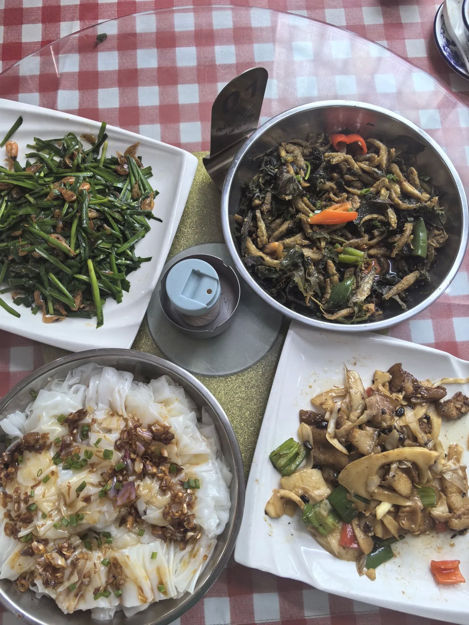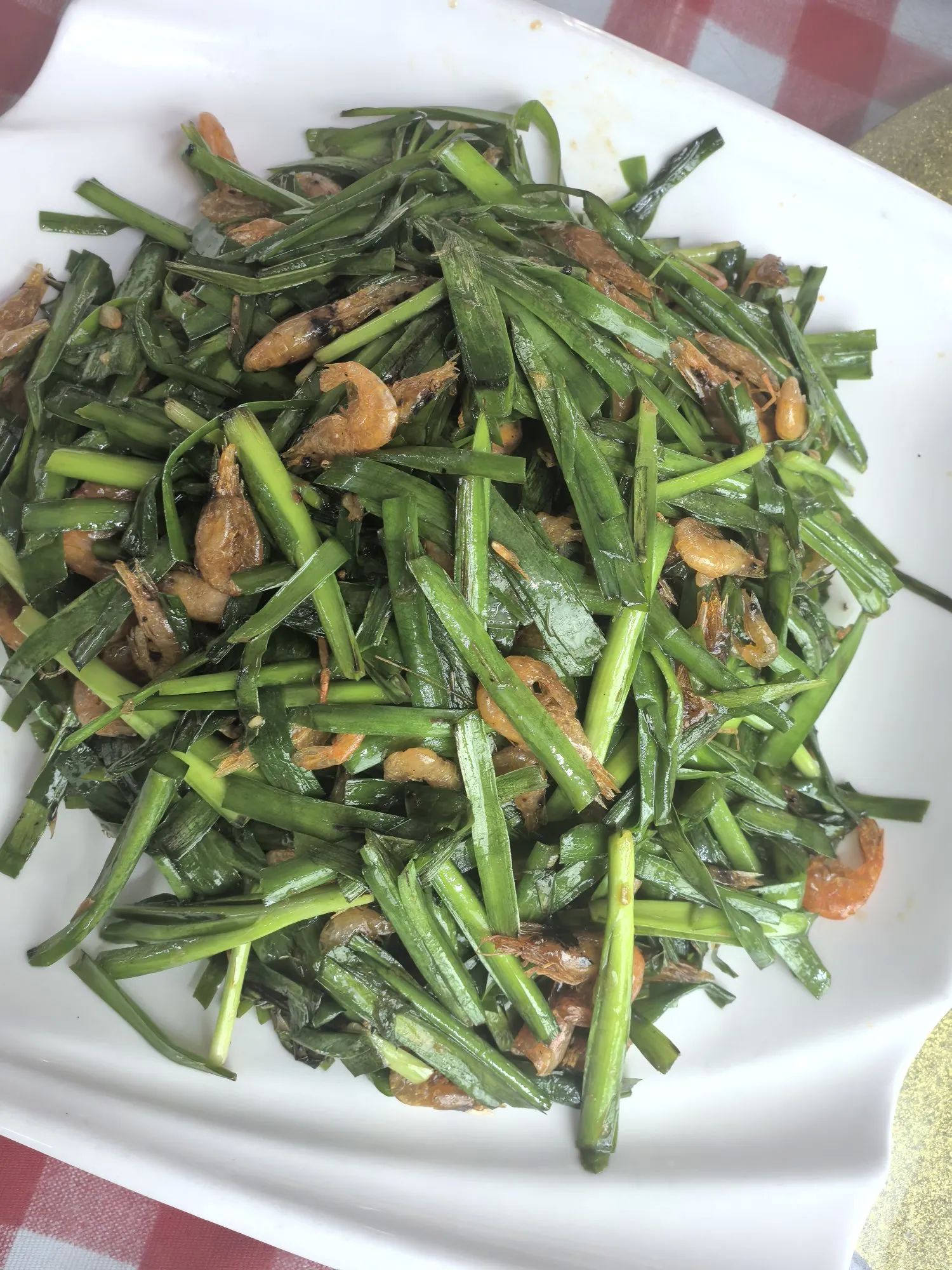 作为从珠海过来这边旅游的游客,地域差异的感受。从这家餐厅开始,首先,是菜的分量比珠海多了很多,就拿这份韭菜炒河虾来看,我觉得这一盘菜在珠海拆成三份都说的过去,而且这个韭菜还很新鲜,河虾也很鲜美,虽然量很大,我们还是笃定的把它吃完了。