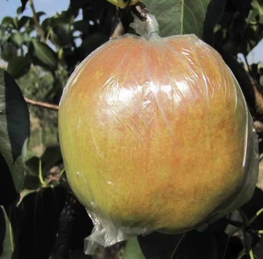 果实特点:果个大,平均单果重236.8克,最大550克,果实椭圆或卵圆形。果皮薄,呈黄绿色,阳面有红晕或暗红色条纹,果面光洁细腻具蜡质。果肉细嫩酥脆,石细胞极少,汁液特多,香甜爽口,可溶性固形物含量12.5%~14.0%,果心小,可食率90%以上。