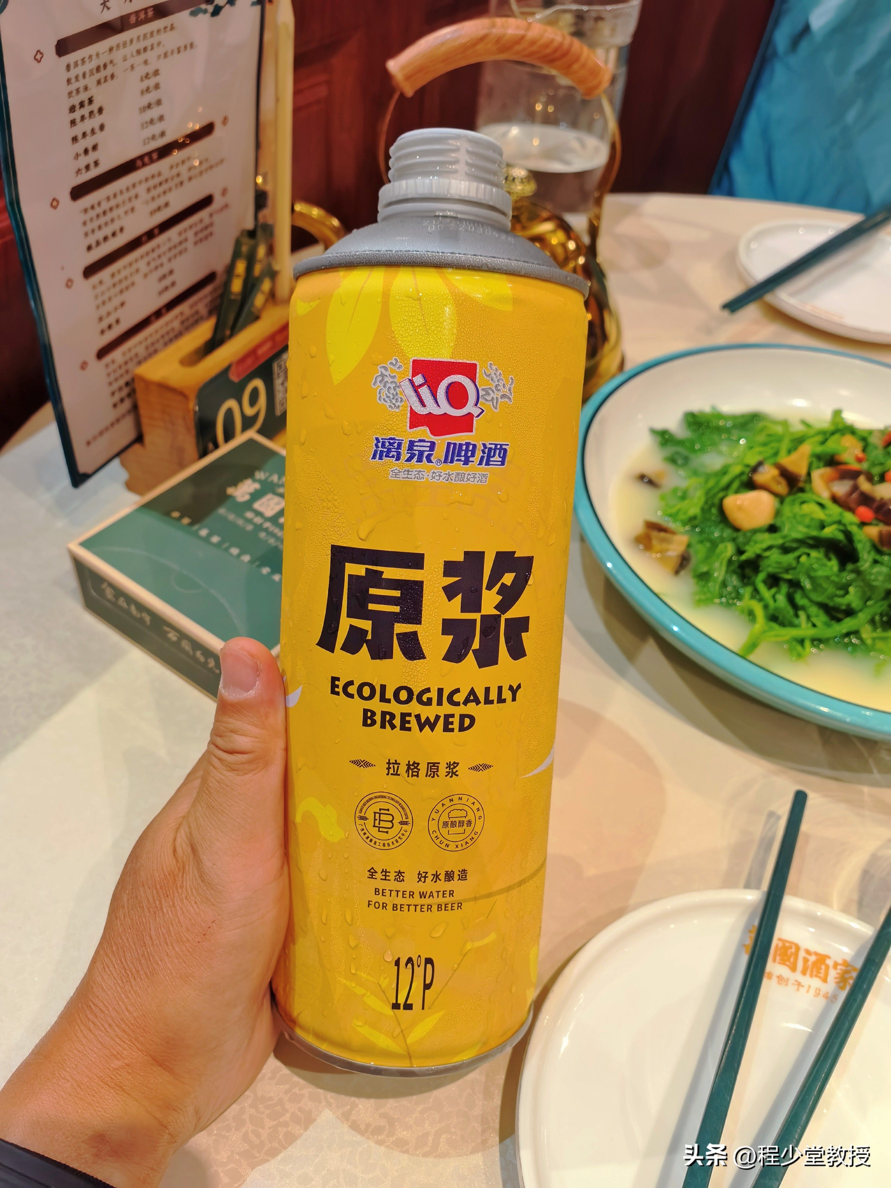 我还特意点了一支以前没喝过的原浆漓泉啤酒,这一尝真是惊喜——麦香浓郁,口感醇厚顺滑,比起寻常啤酒不知要出色多少。清冽的酒液正好化解了菜肴的丰腴,每一口都让人忍不住赞叹。