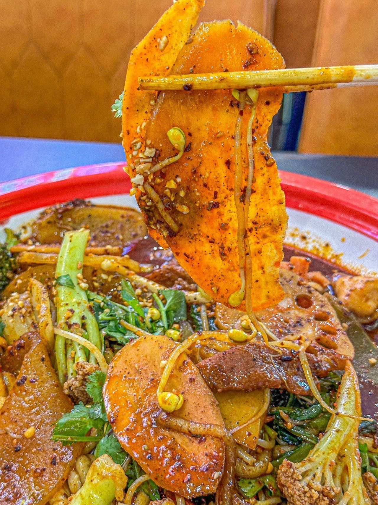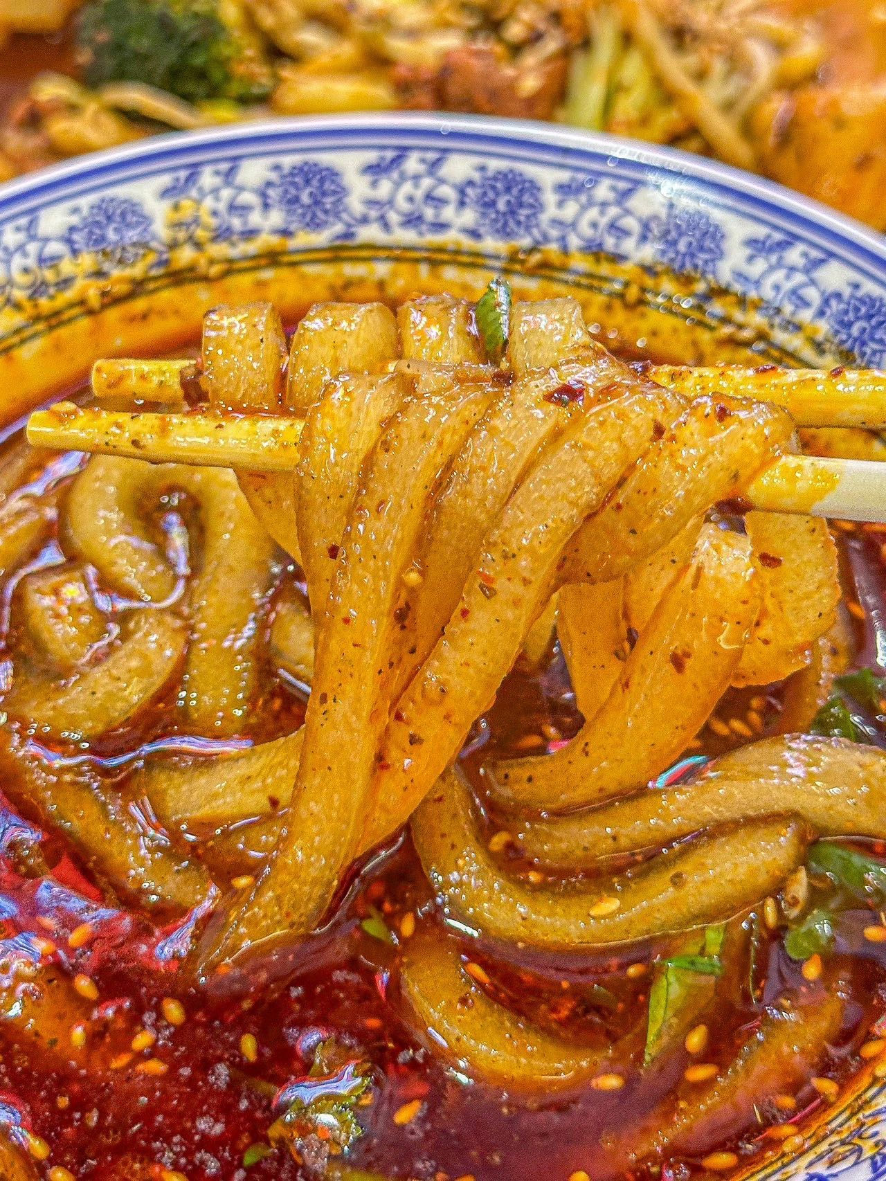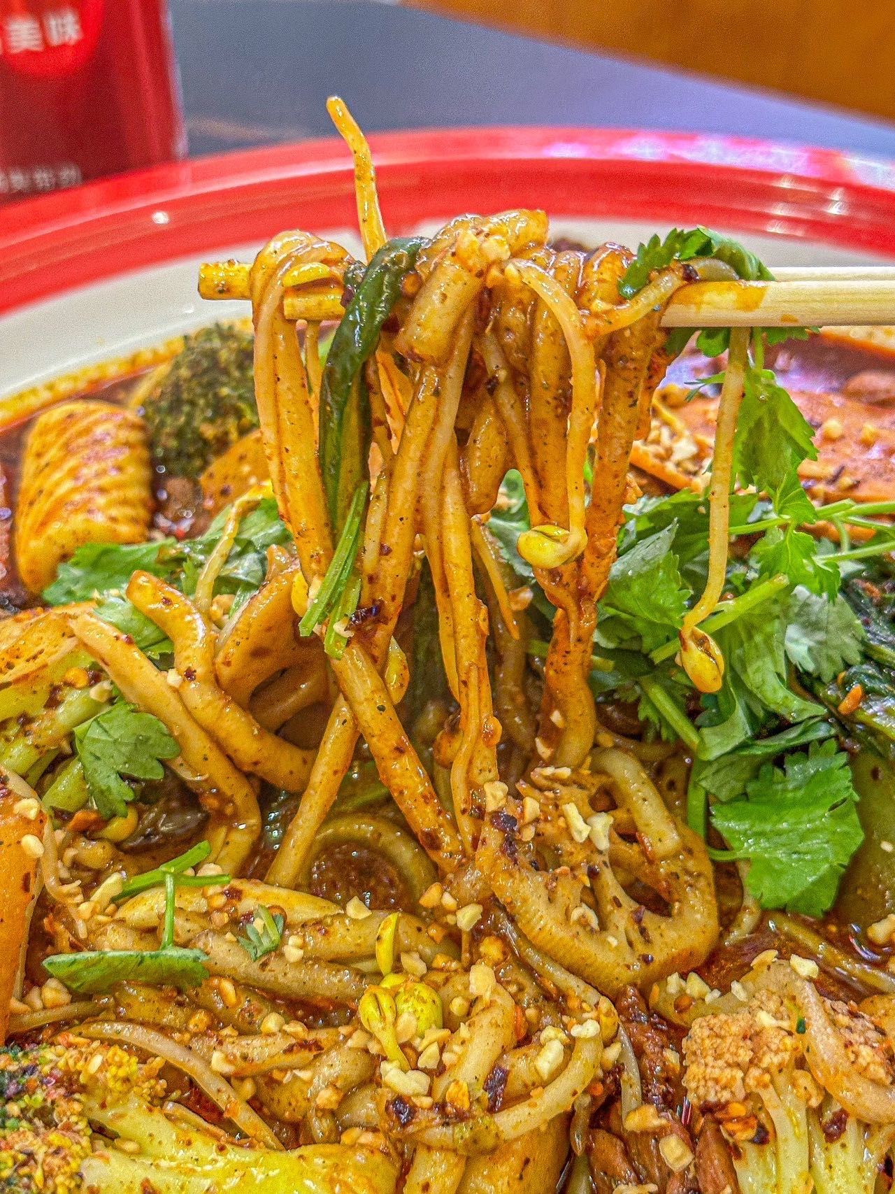 · 天水麻辣烫: 天水的"网红"美食,特色汤底咕嘟作响,各色蔬菜、手擀粉在辣浪中翻滚,夹一筷子入口,烫、辣、鲜层层炸开。