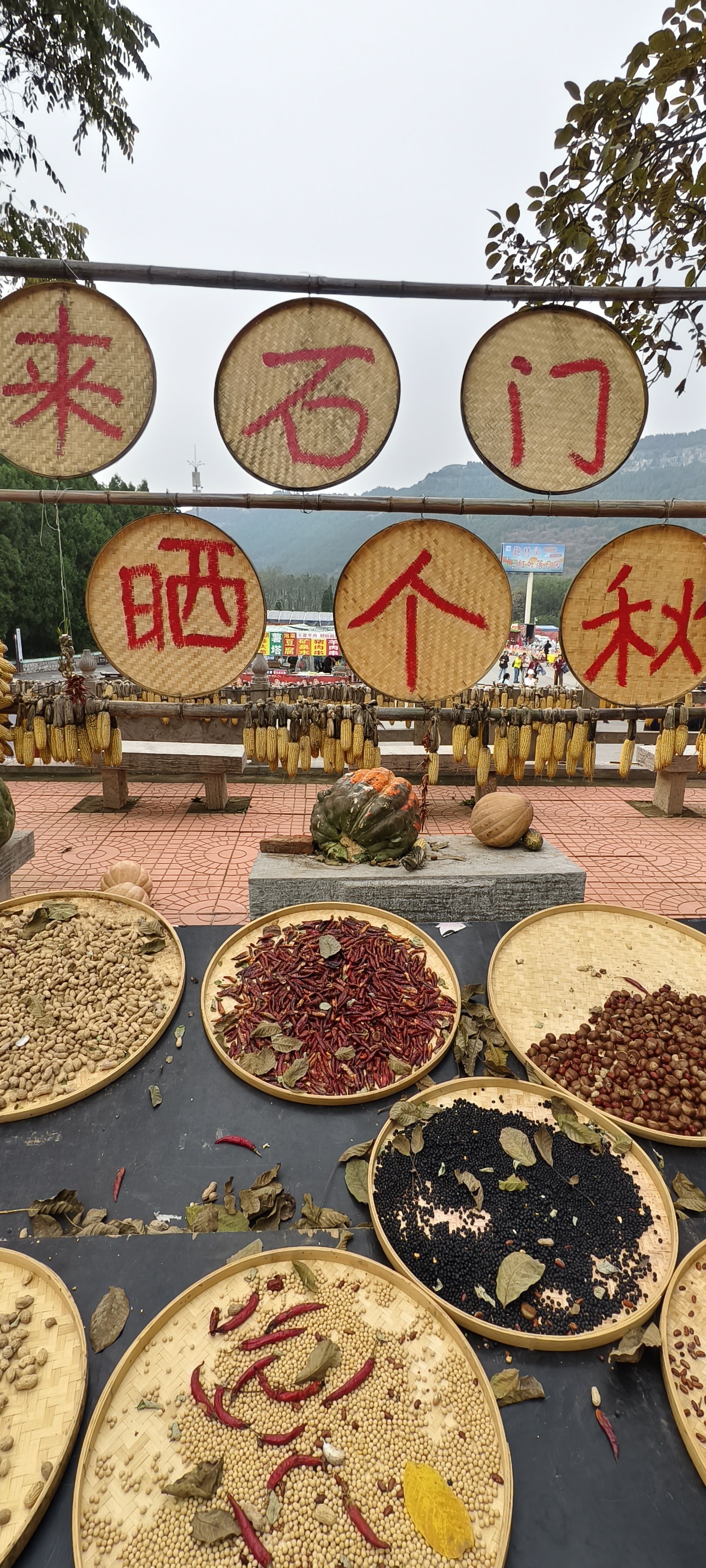 一进石门坊大门,感觉像进了农贸市场,卖吃的喝的,特别多,也都是当地山里的土特产,价格也不贵,来爬山不用担心饿着,这里卖什么的都有。