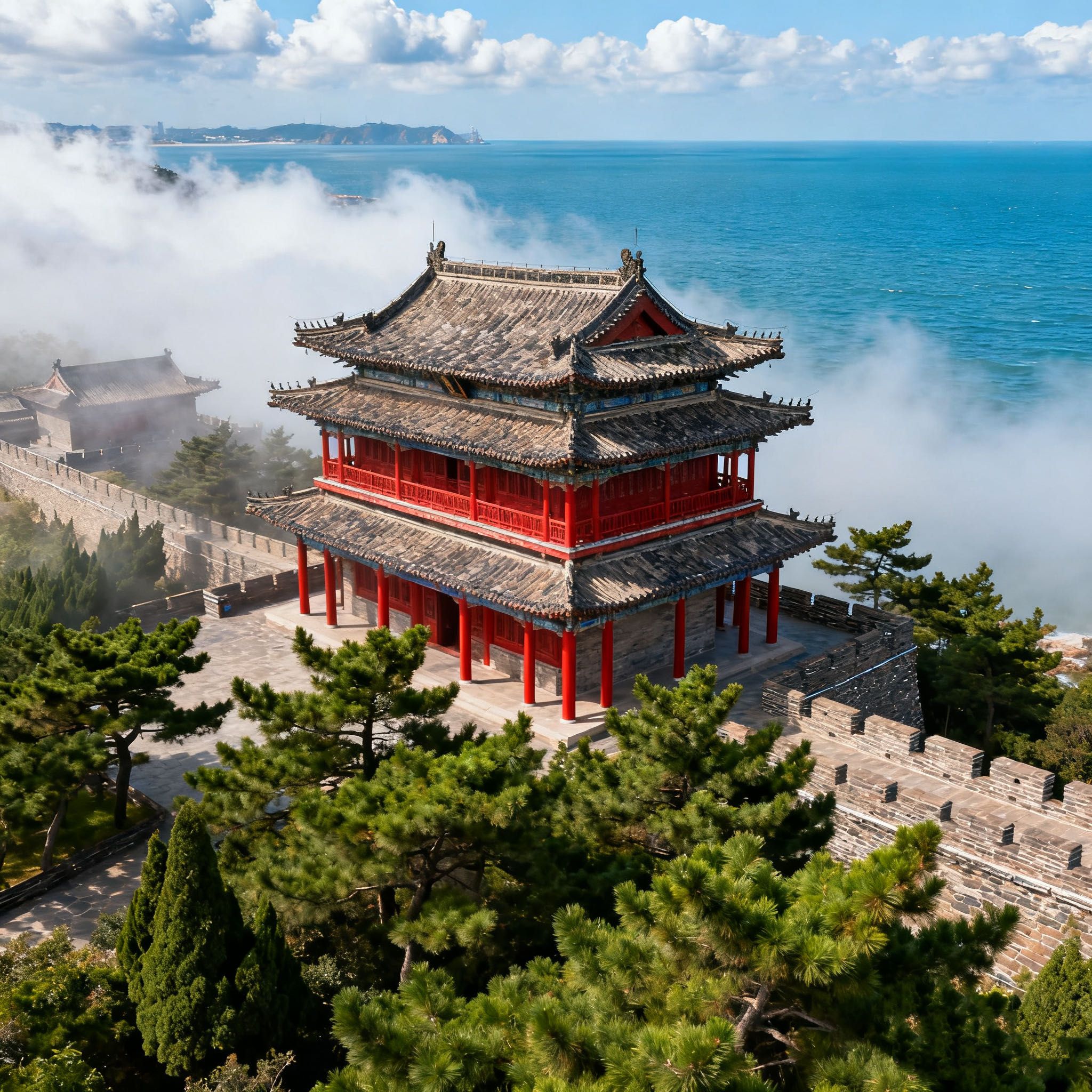 登临蓬莱阁,才是仙境之旅的真正开启。这座始建于宋代的千年古阁,凌空矗立于丹崖峭壁之上,与滕王阁、黄鹤楼、岳阳楼并称中国古代四大名楼。当您踏着苏轼、董其昌等文人墨客的足迹拾级而上,黄渤二海的交汇处尽收眼底,八仙过海的传说在此刻变得栩栩如生。这里最动人的,不仅是"仙阁凌空"的壮美,更是那种与历史对话的实感——每一块砖石都在诉说着从秦汉到明清的仙缘故事。
