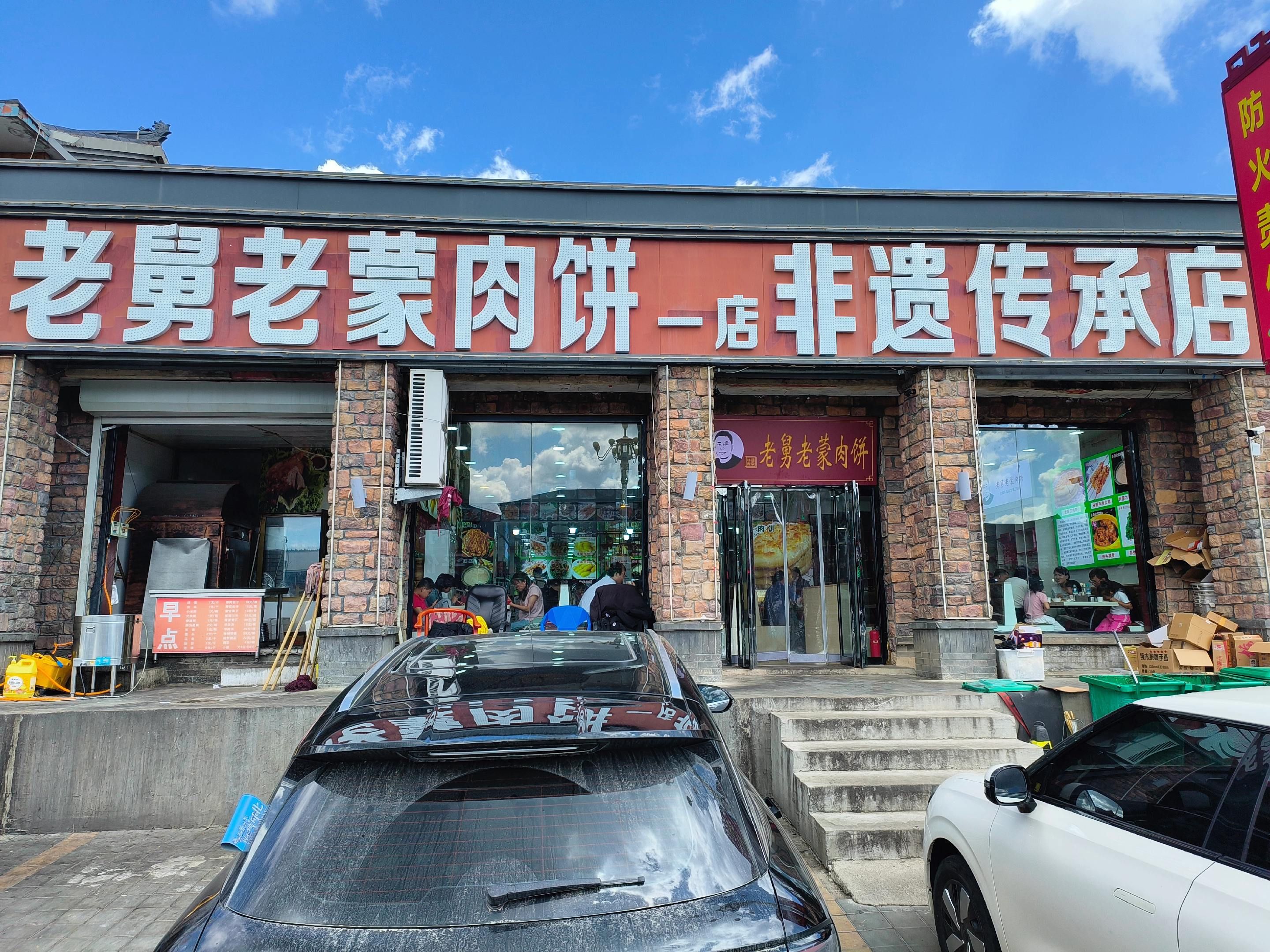 离塞罕坝南门往北不远,有个专门集住宿和餐饮的小镇。小镇有一家河北省最好吃的肉饼总店,叫“老舅老蒙肉饼”。当地人介绍,这个肉饼传承了千年,所以现在被列为非物质文化遗产。还说不吃他家肉饼,不算到过冀蒙交界处。不过的确好吃,皮薄又脆,肉馅很厚。