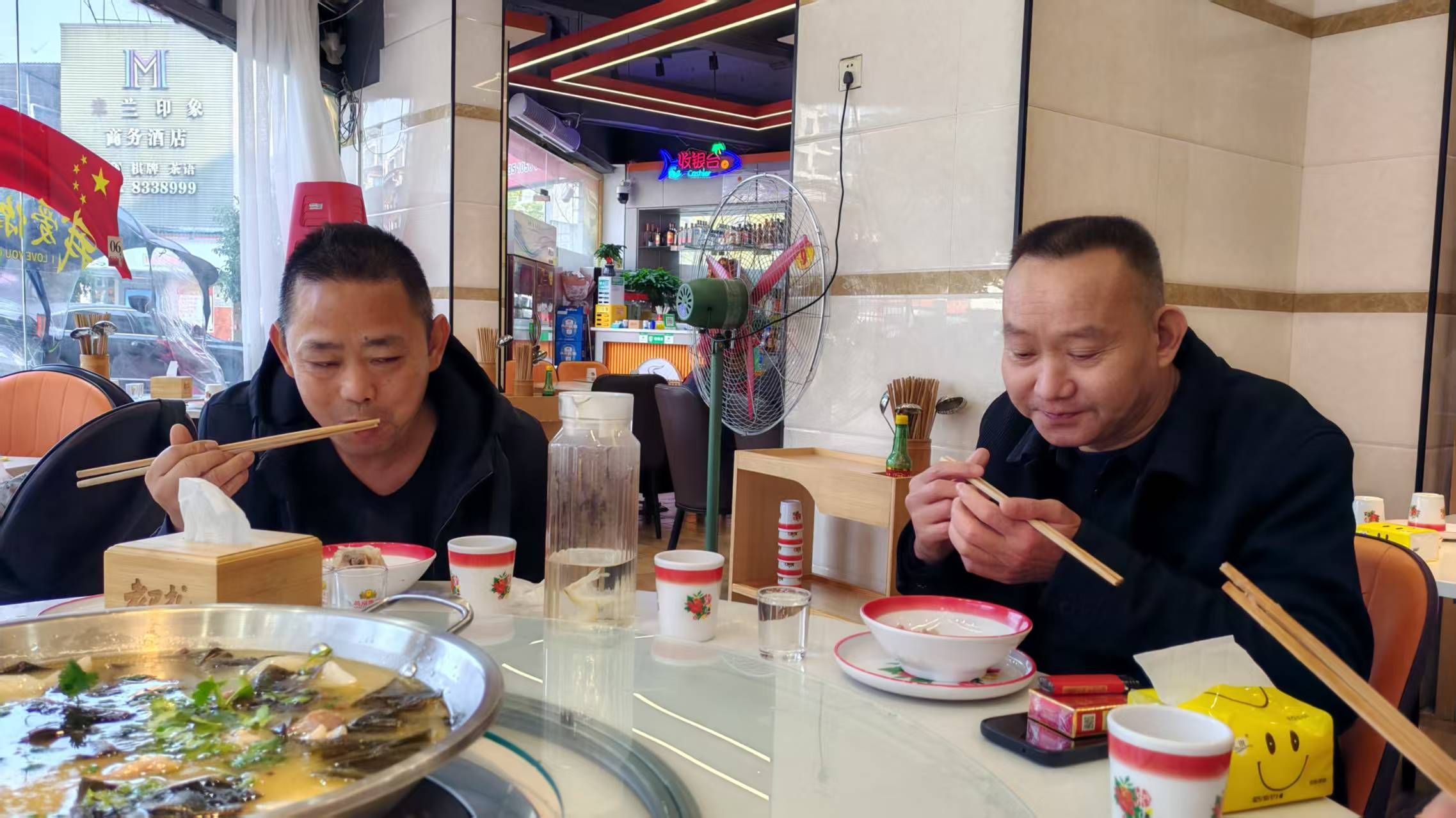 应陶总之邀,我于昨日11点半到达距成都380公里的南充市营山县做客。第一张图右侧为陶总,第二张图左侧为陶总夫人,第一张图左侧为小郭,第二张图为张总,第三张图为杨总。两日来,几位朋友中午晚上陪吃陪喝,让我感受到陶总和营山的朋友的热情和肝胆。杨总为了陪我喝酒,特意不吃一餐感冒药陪我喝,此情此景令我感动。张总多次把家里珍藏的白酒带来与我们一起分享。陶总昨天通宵忙公务之后,每餐陪我喝酒品茗。每次喝酒都在鱼码头酒店。从土猪脚、黄辣丁、到牛脚、胖头鱼,还有酥香脆嫩的炸大肠,营山特色美味轮番上阵,让我们尽情享受营山特色的舌尖上的美味。此外我还在他们的陪同下品营山茶文化,游白塔公园、西月湖公园、湿地公园和体育公园等景点。营山公园多,喝茶的会所多,一壶茶一人10元,市民娱乐休闲经济又巴适。集中体现蜀文化的安逸和舒适。道路平而宽阔,广场多,停车做生意空间大,体现城市管理的智慧和弹性 。出租车便宜,起步价3公里五元。特别是白塔公园以科举考试和读书为主题,很有文化底蕴,令人印象深刻,留恋忘返。特别是县政府内的假山设计建造精美,惟妙惟肖,游鱼色彩艳丽丰富,让我叹为观止。我想这样的政府有原则又有温度有艺术性,难怪在全国经济普遍低迷的当今,营山得以店铺林立,灯火通明,经济兴旺不衰。我从福建移居四川生活,这是我第一次近距离,较深度了解四川人的生活,我想到几十年前的川军,平时生活安逸,这不是颓废,而是养精蓄锐,一旦国有难他们就会舍弃一切去拼去杀,为中华之生死存亡,血洒疆场。而今,成飞从歼10,20到歼35 ,继续书写这蜀文化的传奇,四川人不仅懂得安逸巴适的喝茶品茗摆龙门阵,关键时候,他们会把骨子里的热血和雄起的基因,瞬间点燃,为川人,为祖国去书写一个个伟大的传奇,不信你看刀郎,饺子,deepseek创始人,还有歼10,歼20,歼35。川人永远书写这华夏文明腾飞的传奇故事!