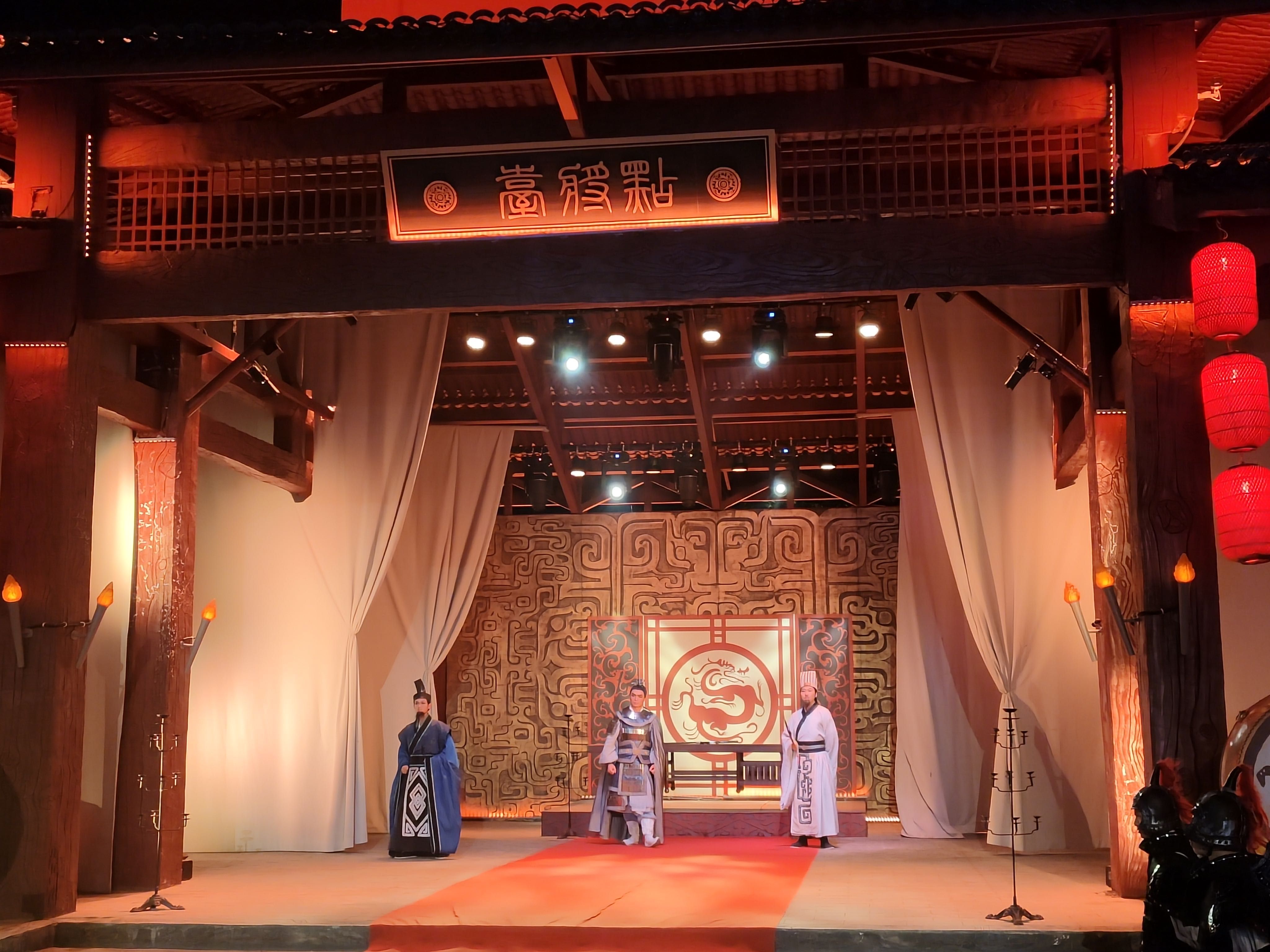 [心]战备篇:随着鼓声渐急,孙刘联军备战场景扑面而来。观众可参与“击鼓助威”,亲身感受诸葛亮登坛借东风的磅礴气势。