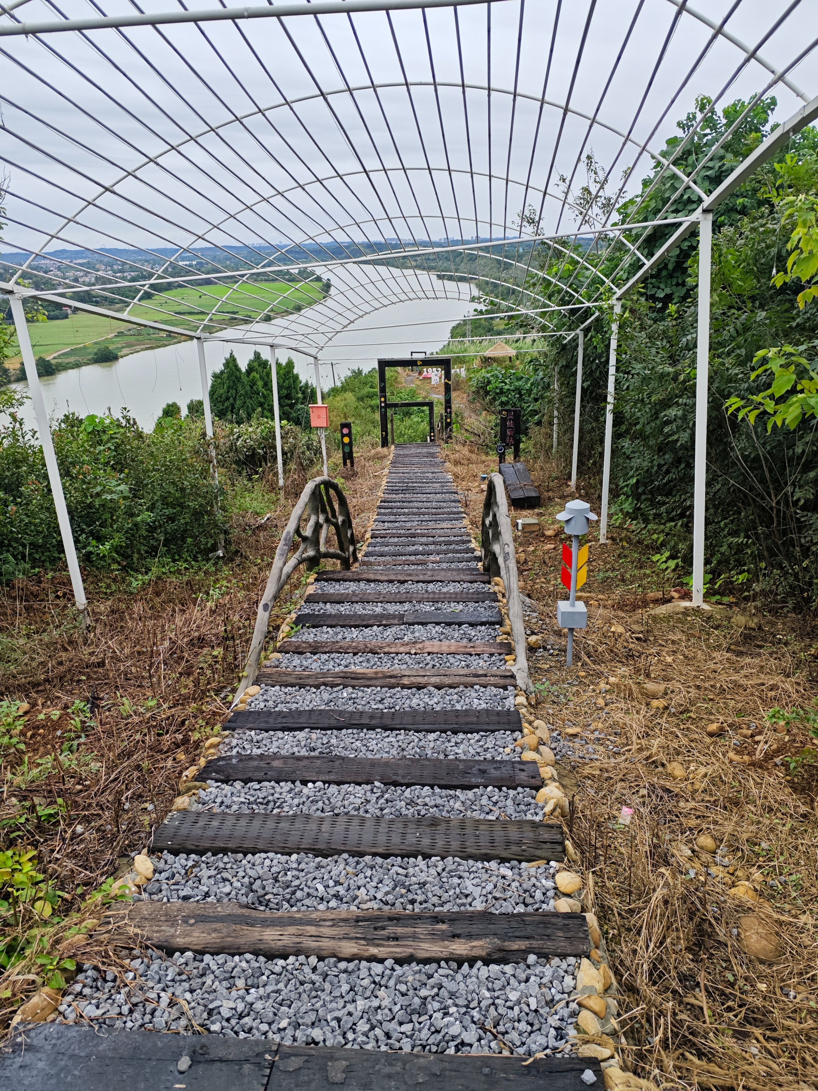 顺着步道往下走,不时能听到火车运行的轰鸣声——这正是仍在运营的老成渝铁路。带着儿子在半山腰驻足,看着货运列车缓缓驶过,读着路边介绍成渝铁路历史的石碑,仿佛也触摸到了一段厚重的岁月。唯一遗憾的是,当天通过的火车不多,我们只遇见了三列货运车。