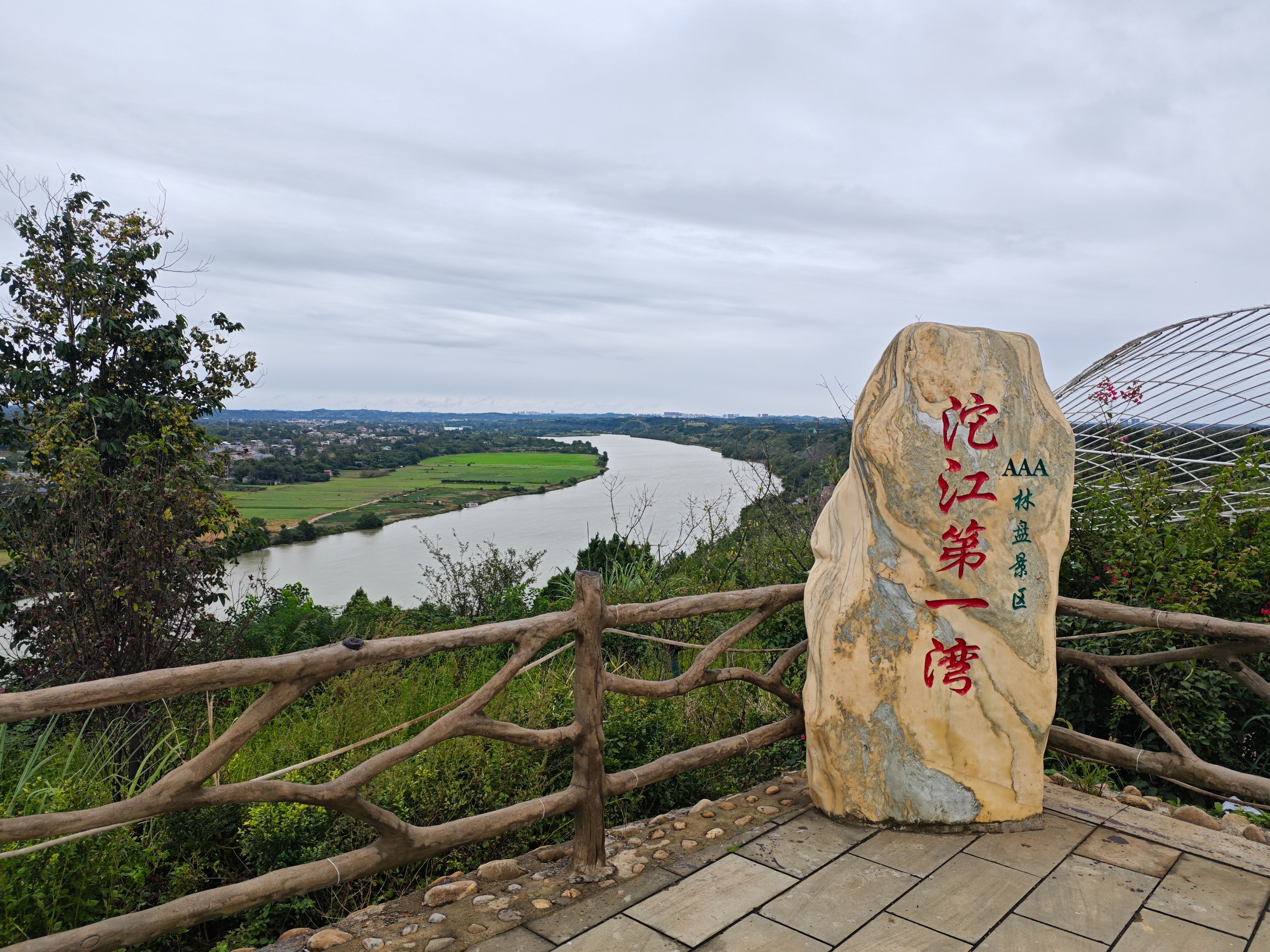 停好车后,我们沿着塑胶步道缓步走向沱江第一湾观景台。站在台上俯瞰,270度的“U”形江湾尽收眼底,江水蜿蜒,山峦叠翠,宛如一幅流动的山水画卷。