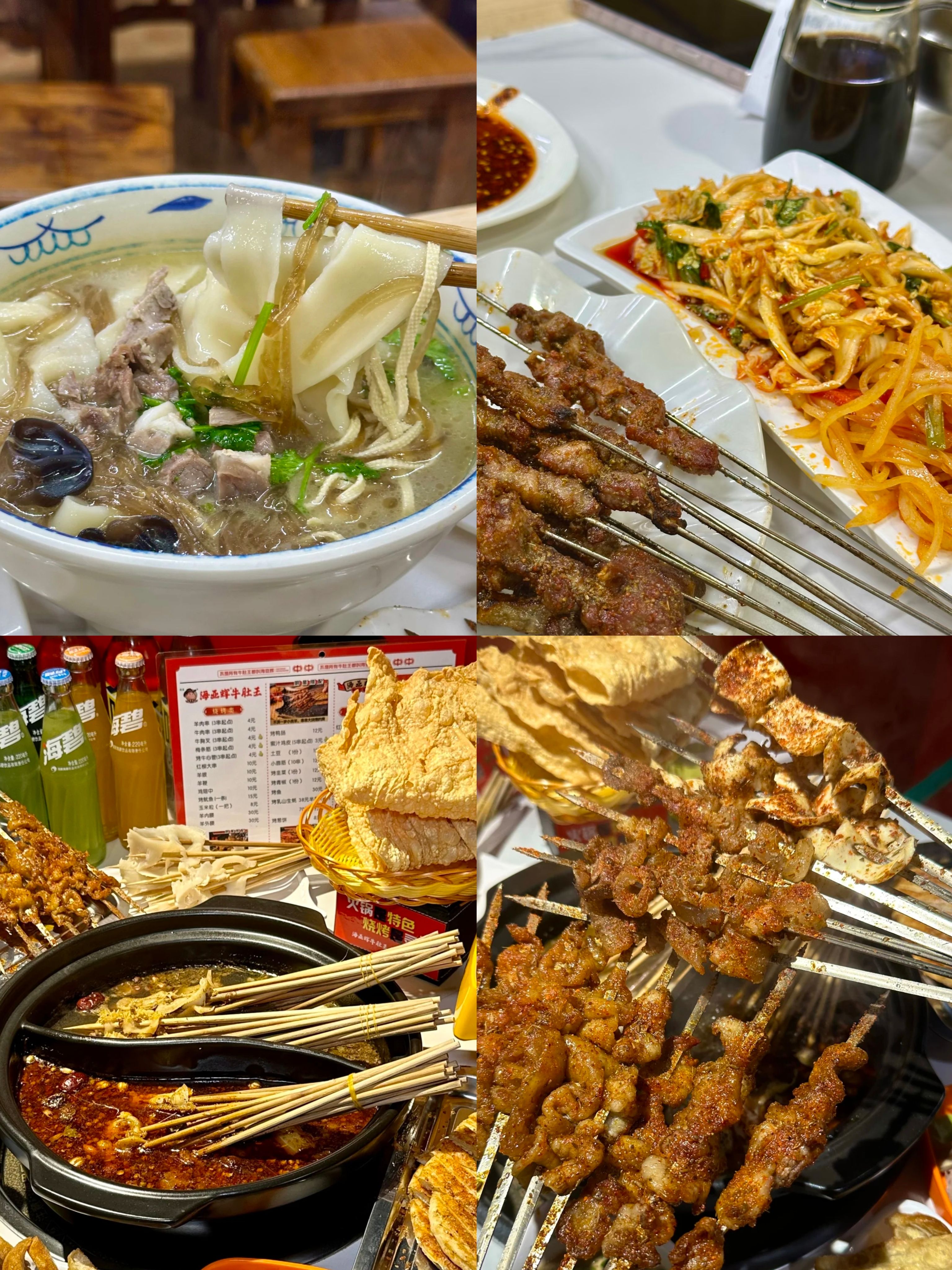 羊汤底烩面!汤汁浓郁到骨子里,面条筋道吸饱精华,搭配羊肉串更是一绝~