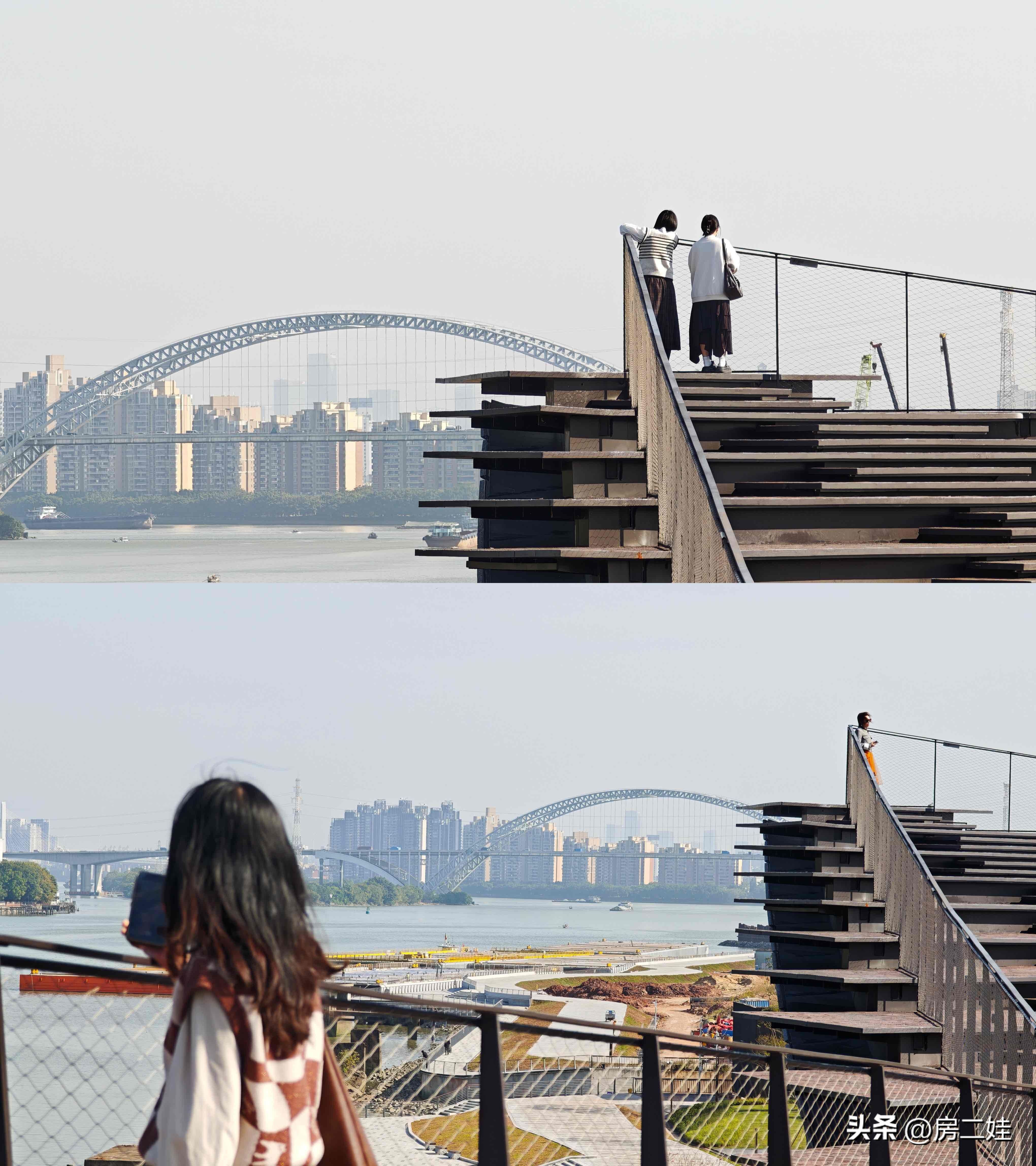 关键是,在这里,随便往某个角落一站,就能拍出超好看的照片。北面呢,又是毫无遮挡的江景,可将一江两岸的景色尽收眼底。