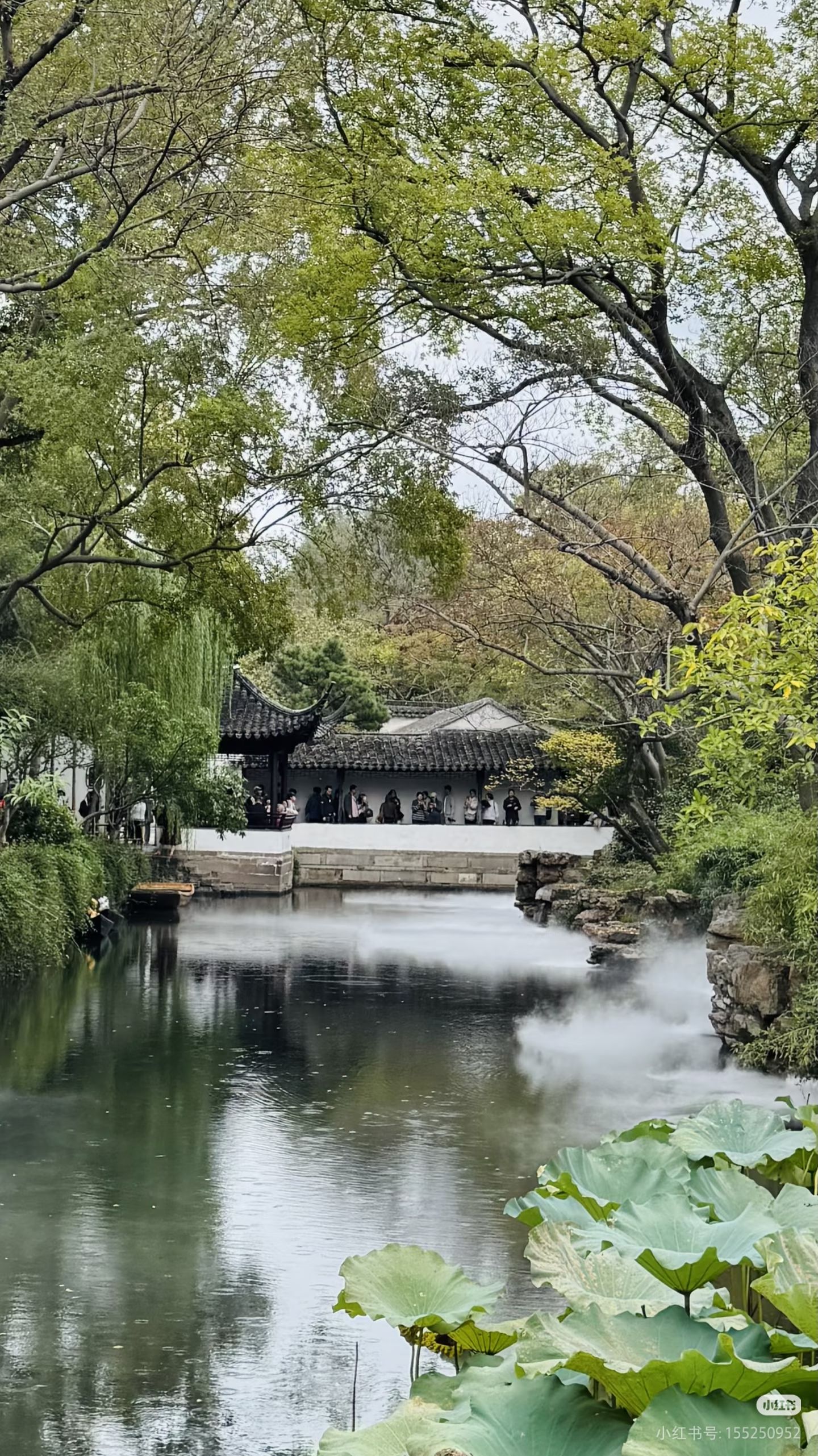 清晨的拙政园,雾气未散,荷花微颤,