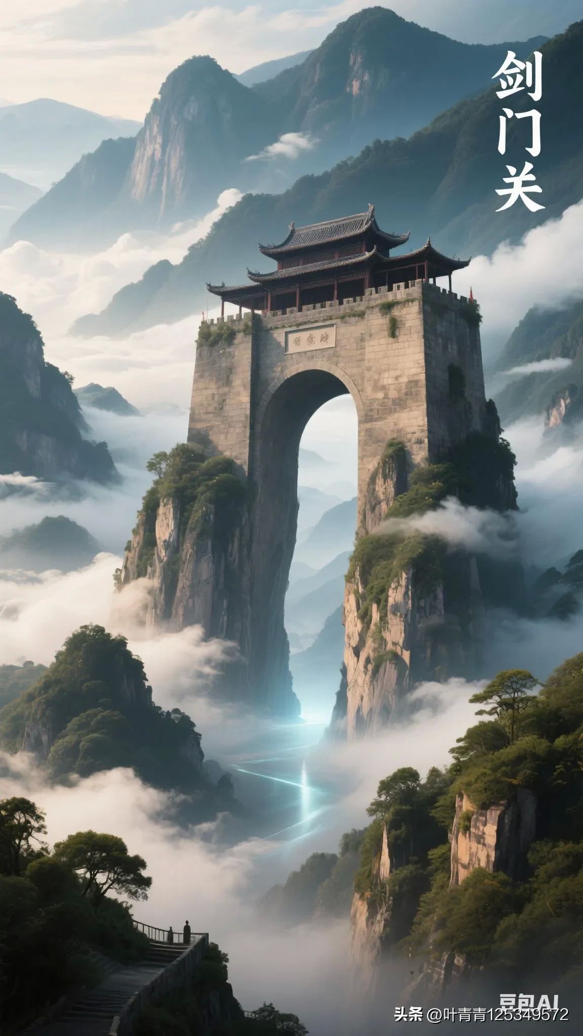 剑门关的自然风光堪称一绝,大剑山、小剑山对峙,峭壁如削,72峰似利剑直插云霄,山间云雾缭绕,仿若仙境。金牛峡、雷霆峡深邃幽静,潺潺溪流在谷底欢腾。