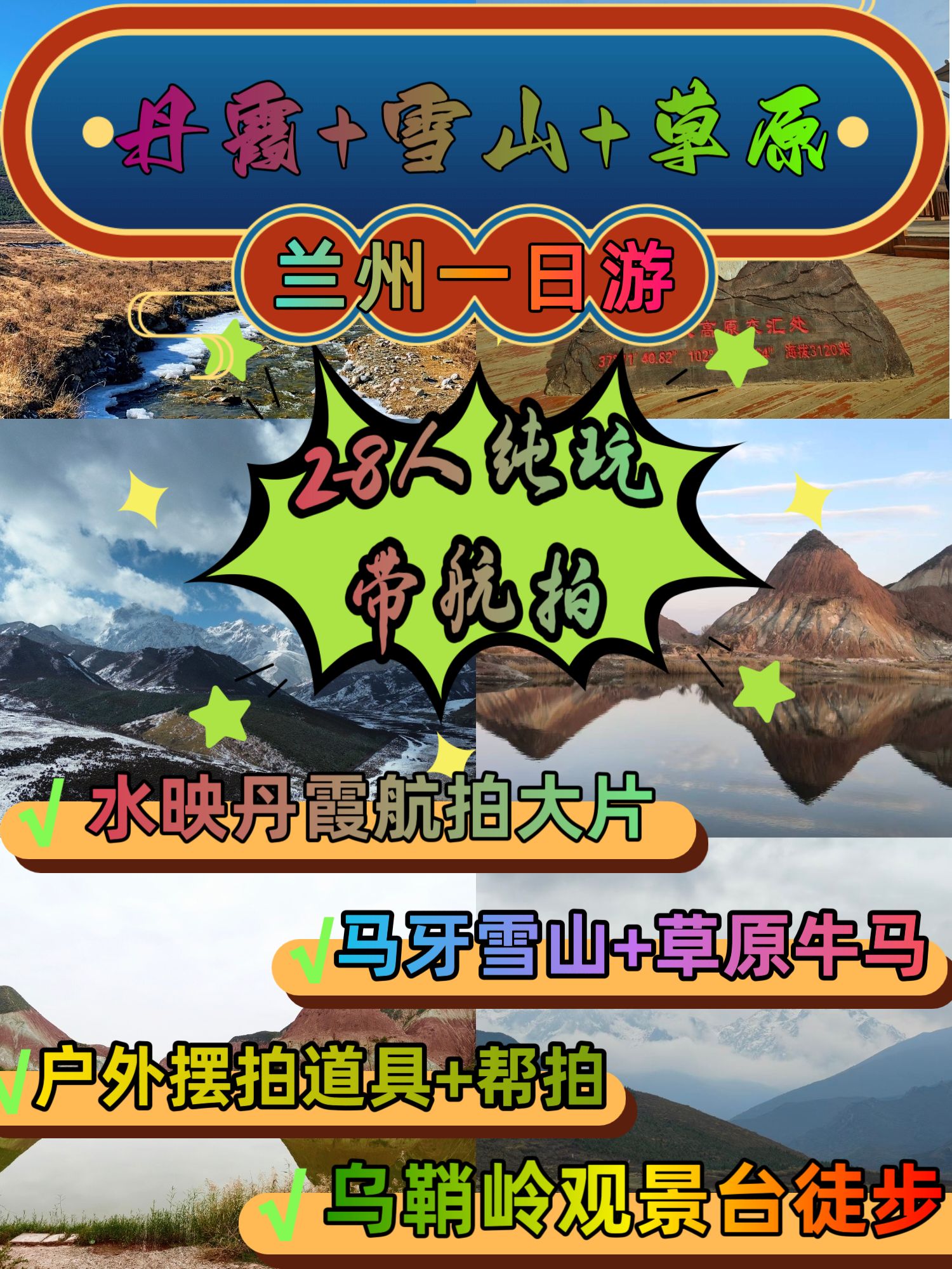 · 穿搭建议:亮色长裙/牛仔帽+墨镜,丹霞和雪山背景超上镜!