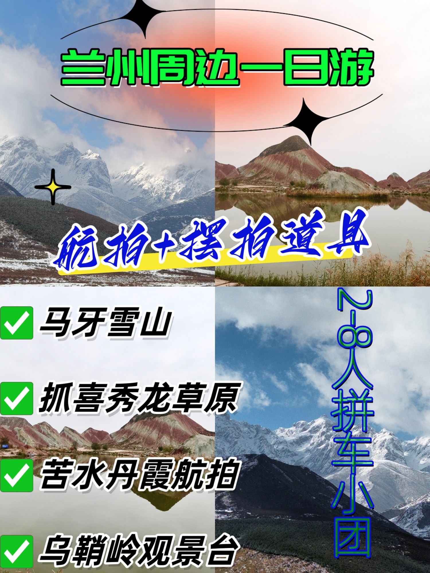 大家好!我是爱旅行爱摄影的小达人~今天要安利一个兰州出发的神仙一日游路线(性价比超高!)!全程拼车纯玩,还能get无人机航拍大片! 懒人必备,不用做攻略,跟着走就对了!