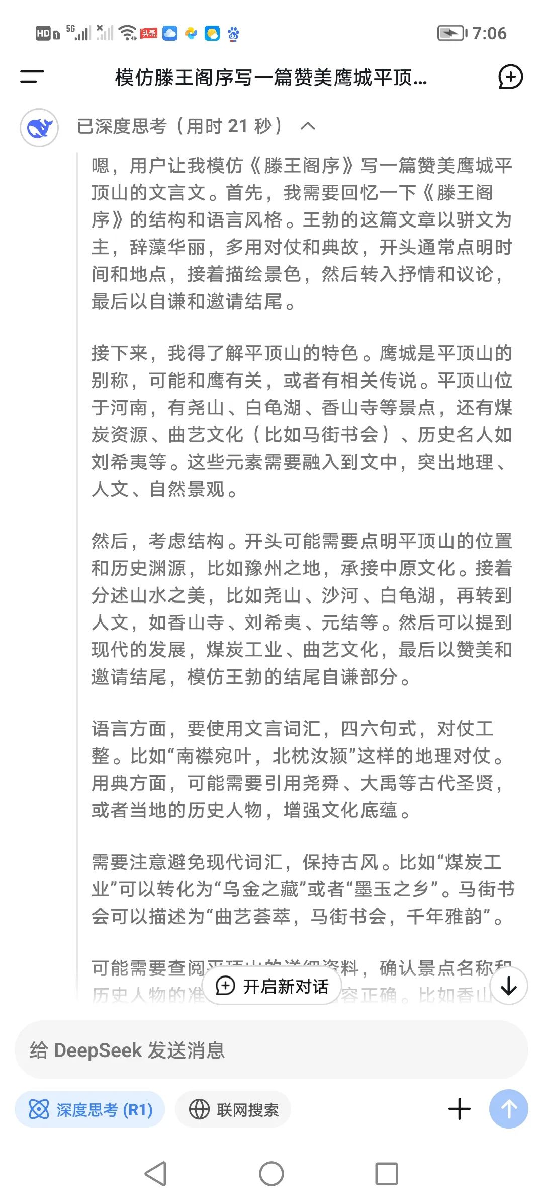 仅仅21秒deepseek就写出下面长文!文言文高手的看过来,看看写的怎么样?