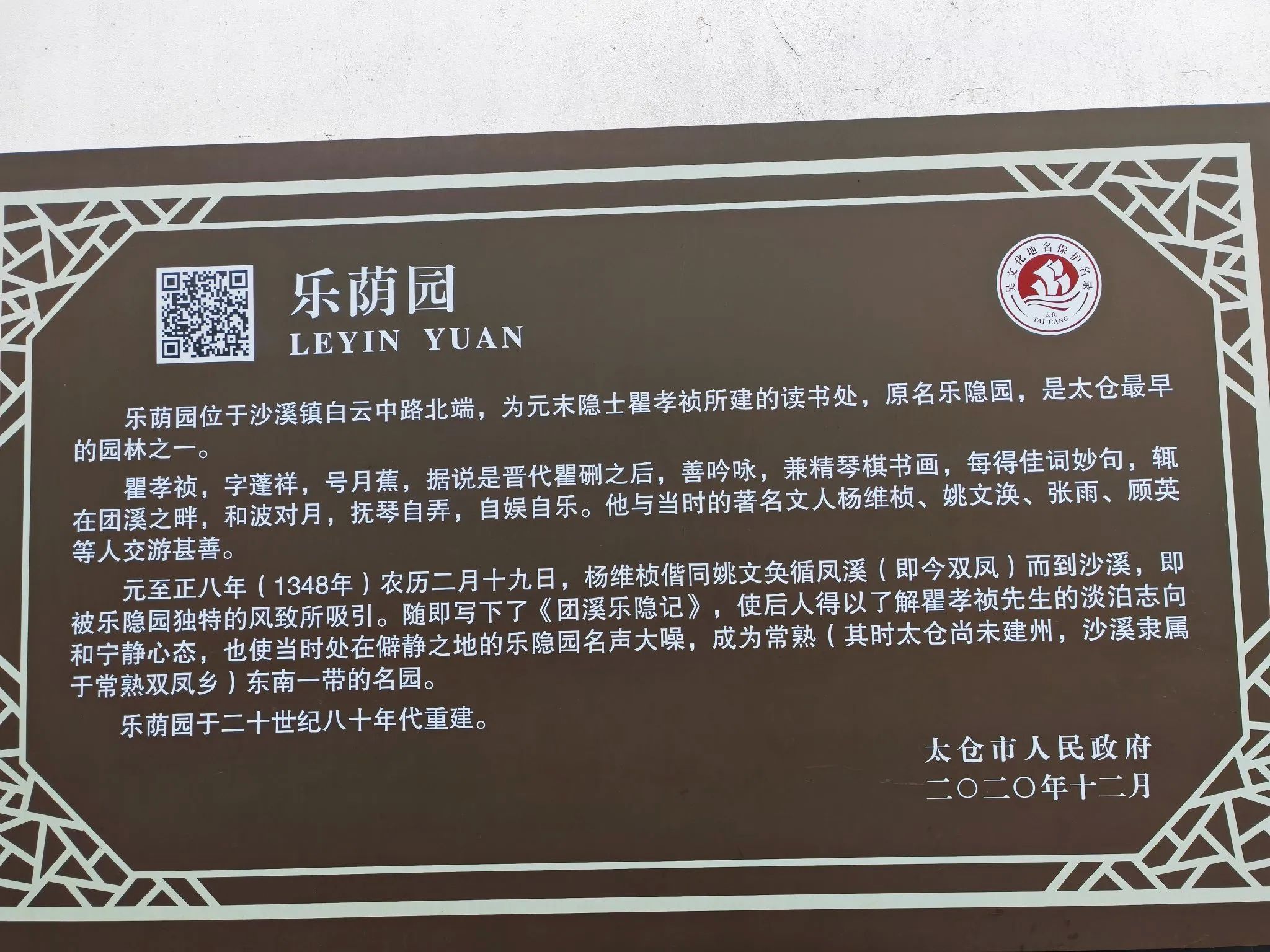 乐荫园位于江苏省太仓市沙溪镇白云中路北端,乐荫二字一开始误把它读作lèm