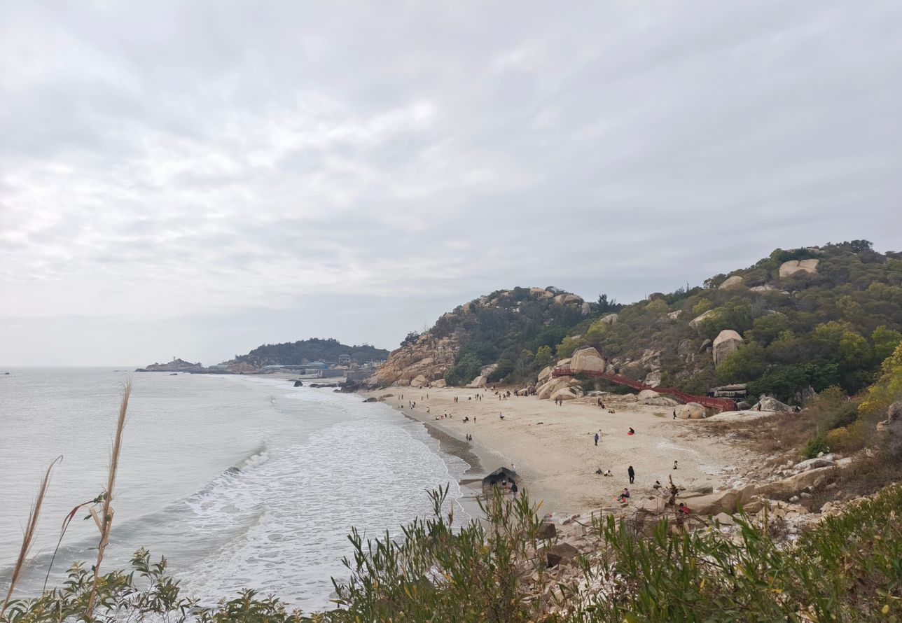 而景点果然小众,游人不多。信步走到海滩上,海沙细腻白皙,赤脚一走,感觉犹如有人给自己轻轻按摩。海边的栈道,全部采用防腐木而建,环岛一圈,每走一步皆是景,海风习习,海天一线,真是休闲放松好去处。