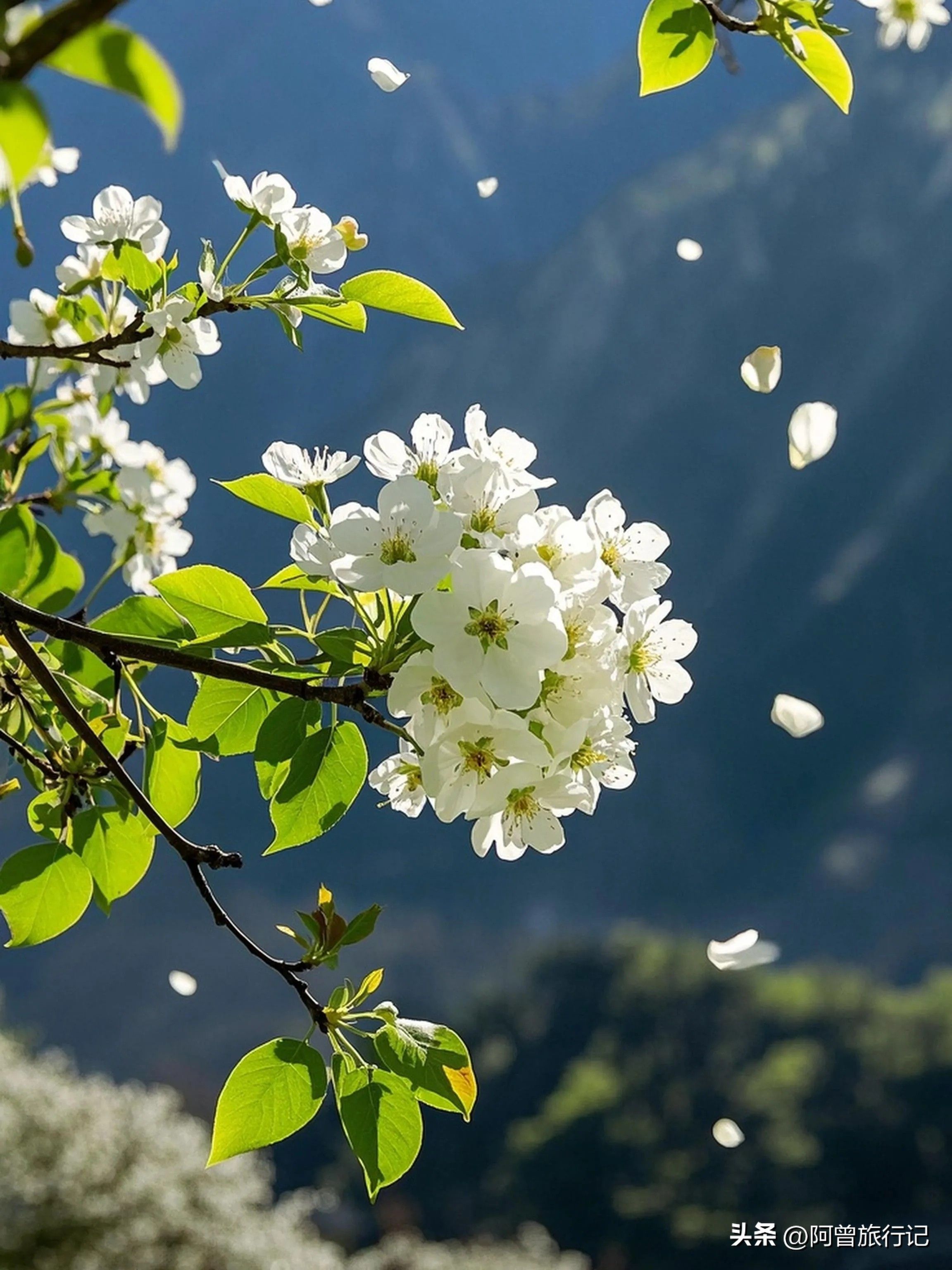2. 赏花好去处:沙耳乡梨花密集,藏寨、碉楼点缀其中;咯尔乡梨花沿河谷分布,满是田园风光;庆宁乡的梨花与青稞田、雪山构成层次丰富的画面;勒乌镇位于县城,河畔梨花与水中倒影相映成趣。