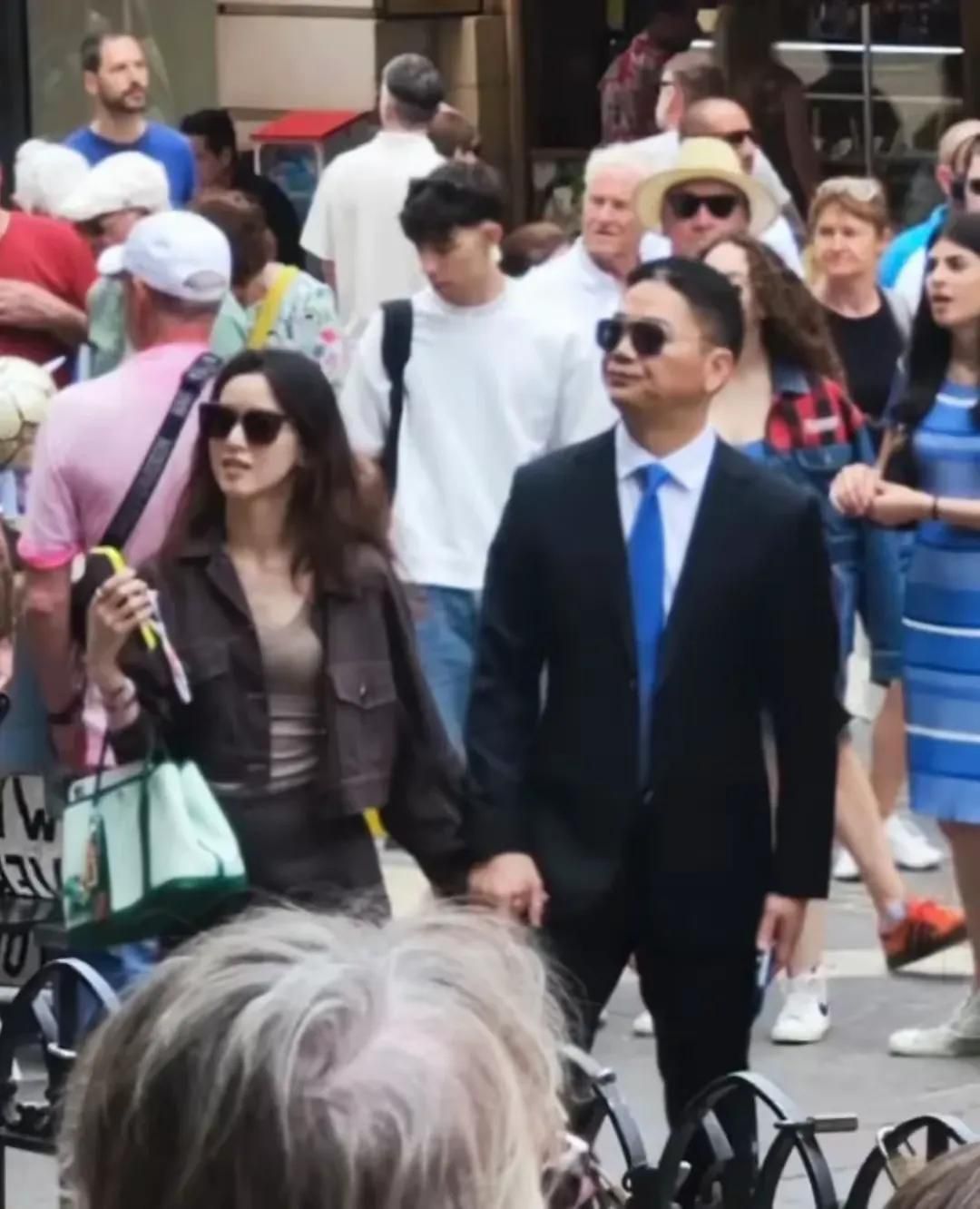 章泽天刘强东欧洲街头甜蜜同框!牵手漫步恩爱如初,正式穿搭成焦点