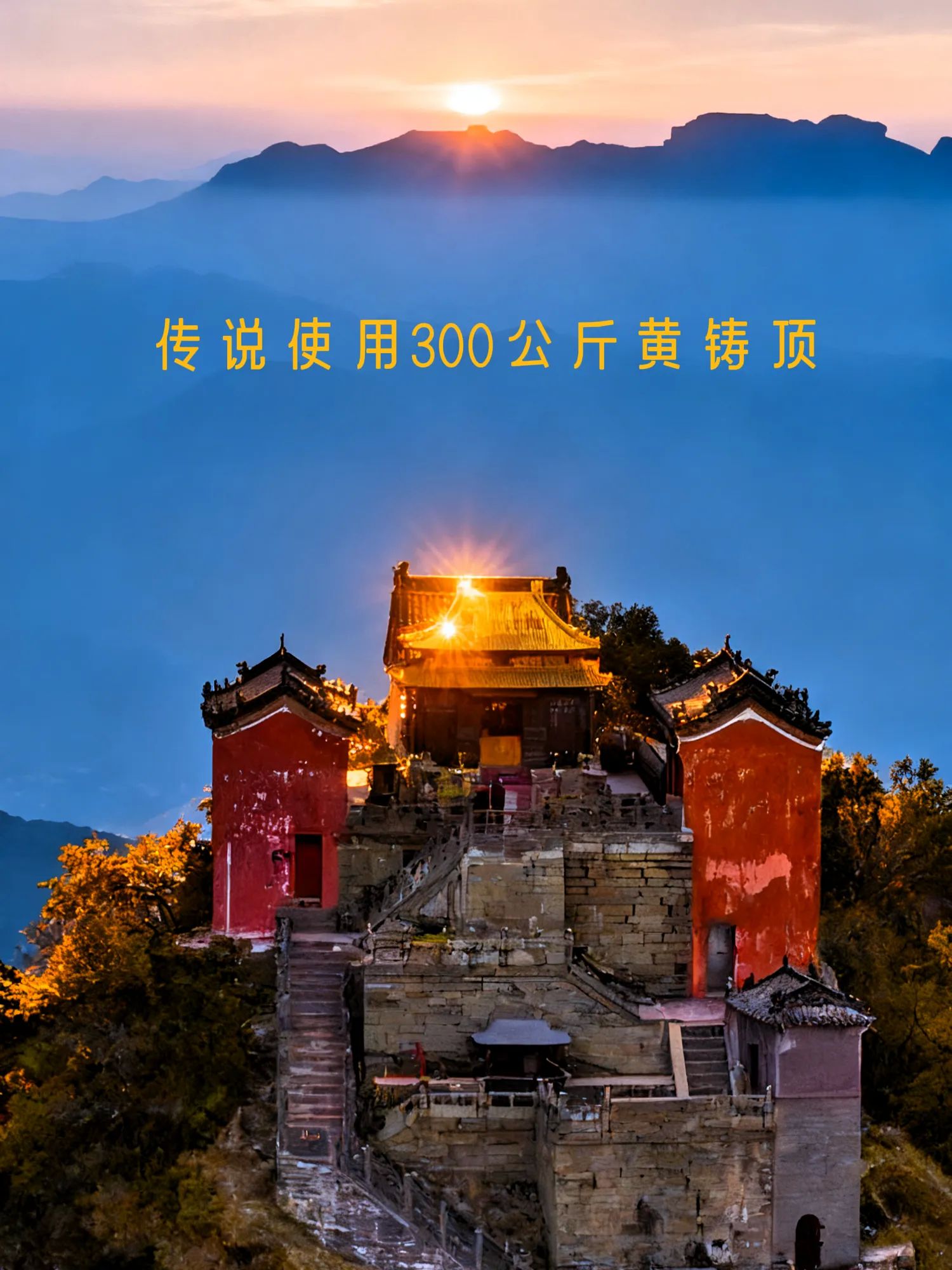 巅峰屋顶,皆为纯金打造而成,是武当山唯一的一处集山和水为一体的生态旅游景点,因猕猴众多而得名,谷中还有武当山明代规模最大的石拱桥之一天津桥。传说使用300公斤黄金铸顶。