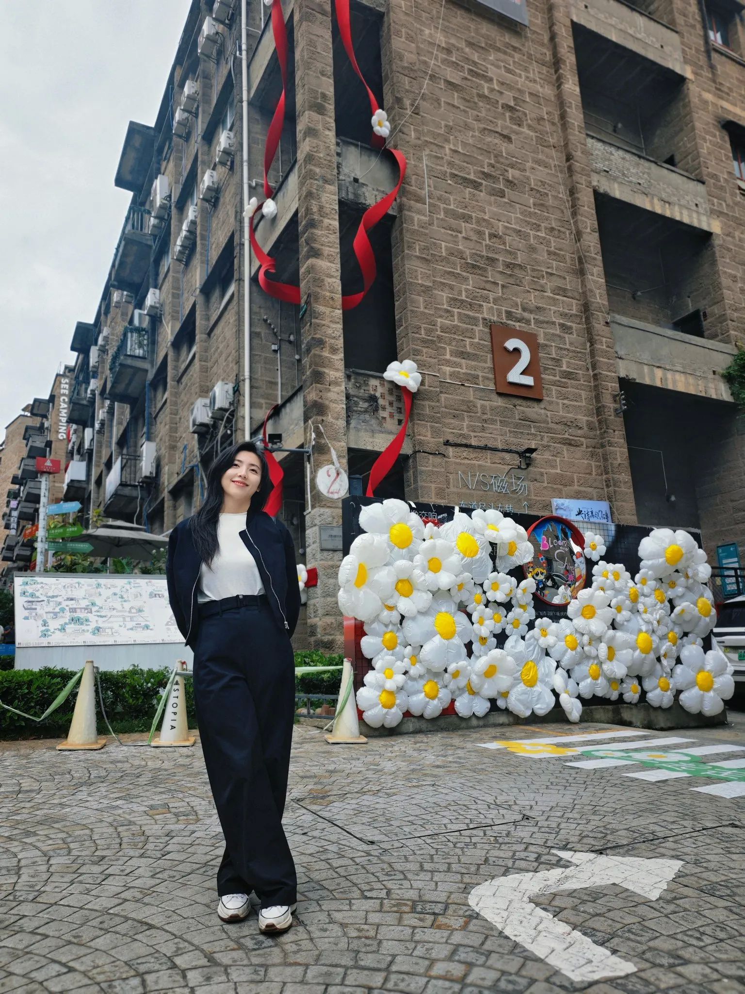 2. 中心街区全景视角:站在文创园中间小路上往上拍,两侧纵向排列的原仓库大楼群,层次感绝了,超级适合拍全景。