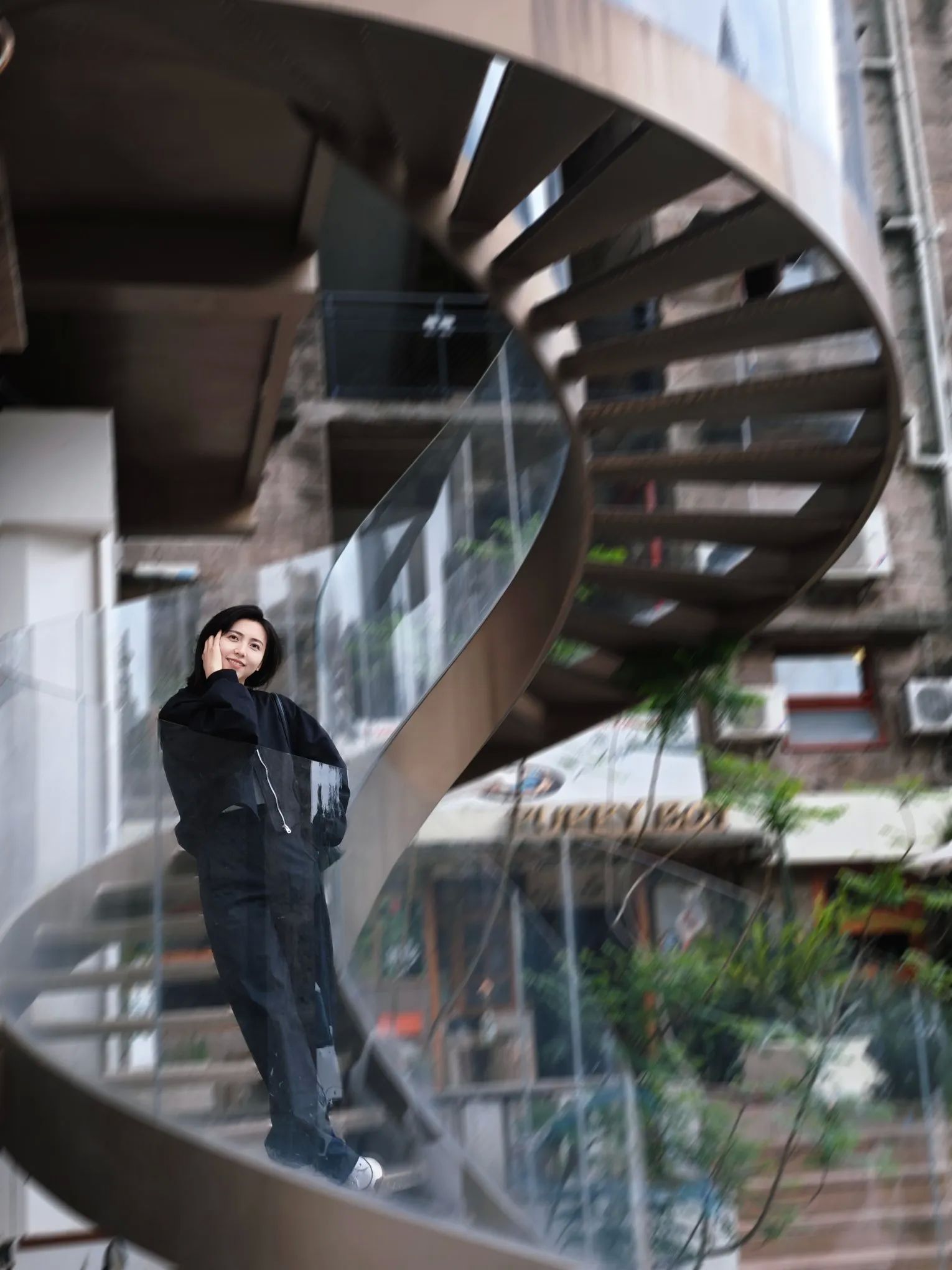 1. 复古外墙阶梯:园区有四段超梦幻的阶梯在仓库外墙,两两相连。从对面楼拍摄,几何线条感拉满,神秘感十足,怎么拍都出片。