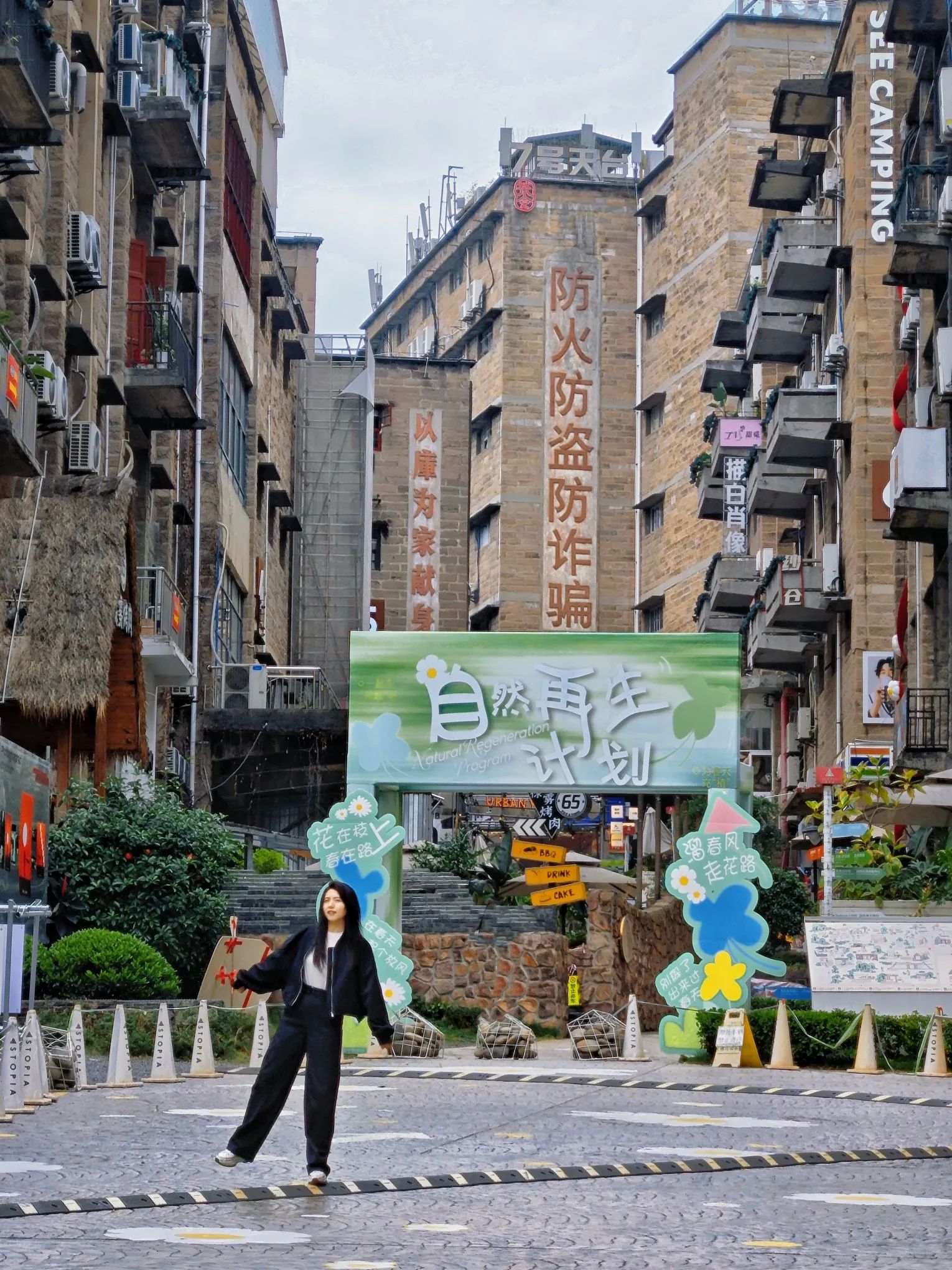 3. 复古角落:旧外墙爬满爬山虎,复古楼道、仓库大门,每一处都能带你一秒穿越回80年代。随便凹个造型,就是复古大片。