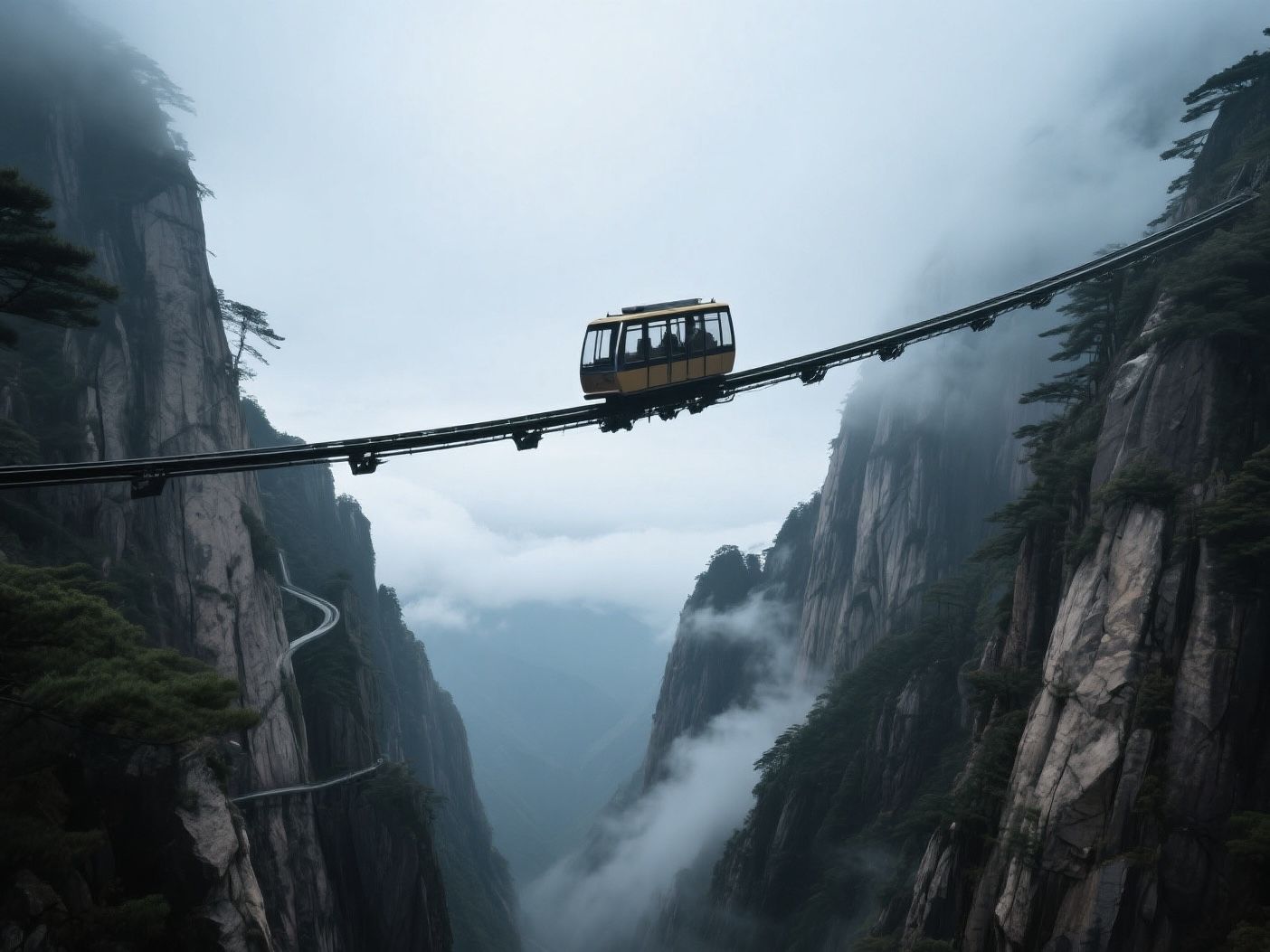 搭乘云谷索道(80元)扶摇直上,10分钟穿越云海。下索道后直奔始信峰,这里是黄山松的博物馆——连理松、龙爪松各具形态,云雾缭绕间宛如仙境。