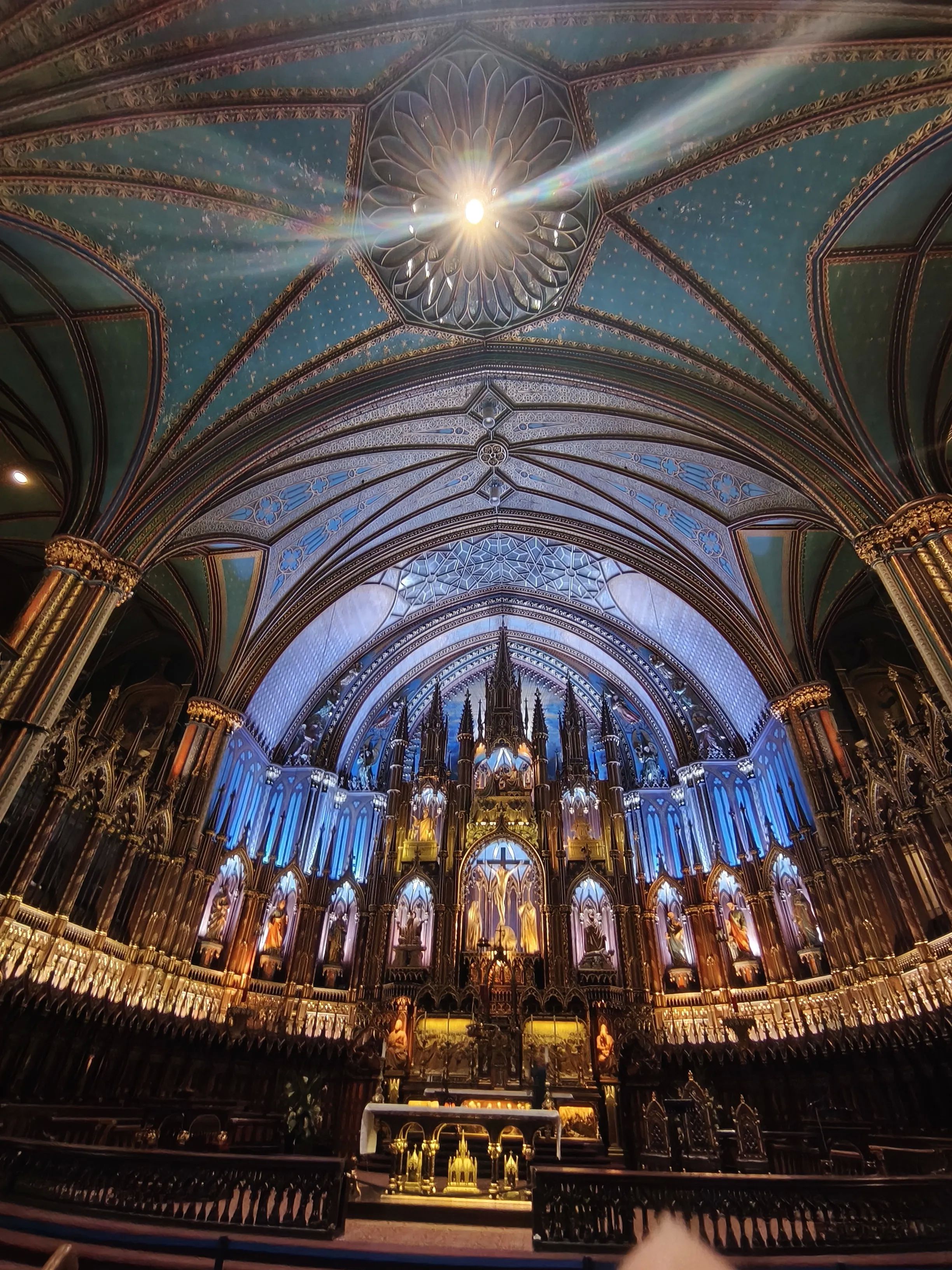 我们给自己安排的时间有点短了,所以只能挑最有名的景点去看看,那首选的就是圣母大教堂了,那教堂确实非常恢宏大气,据说还有小巴黎圣母院的称号呢。也是,魁北克是法国人占领的区域,一切都遵循法国的文化传统嘛。一进去就被那高高的、色彩绚烂的穹顶吸引住了,除了看不懂,就只剩下一个“好”字了。不过,我们懂规矩,进去之后没有大声喧哗,都是轻声讲话。