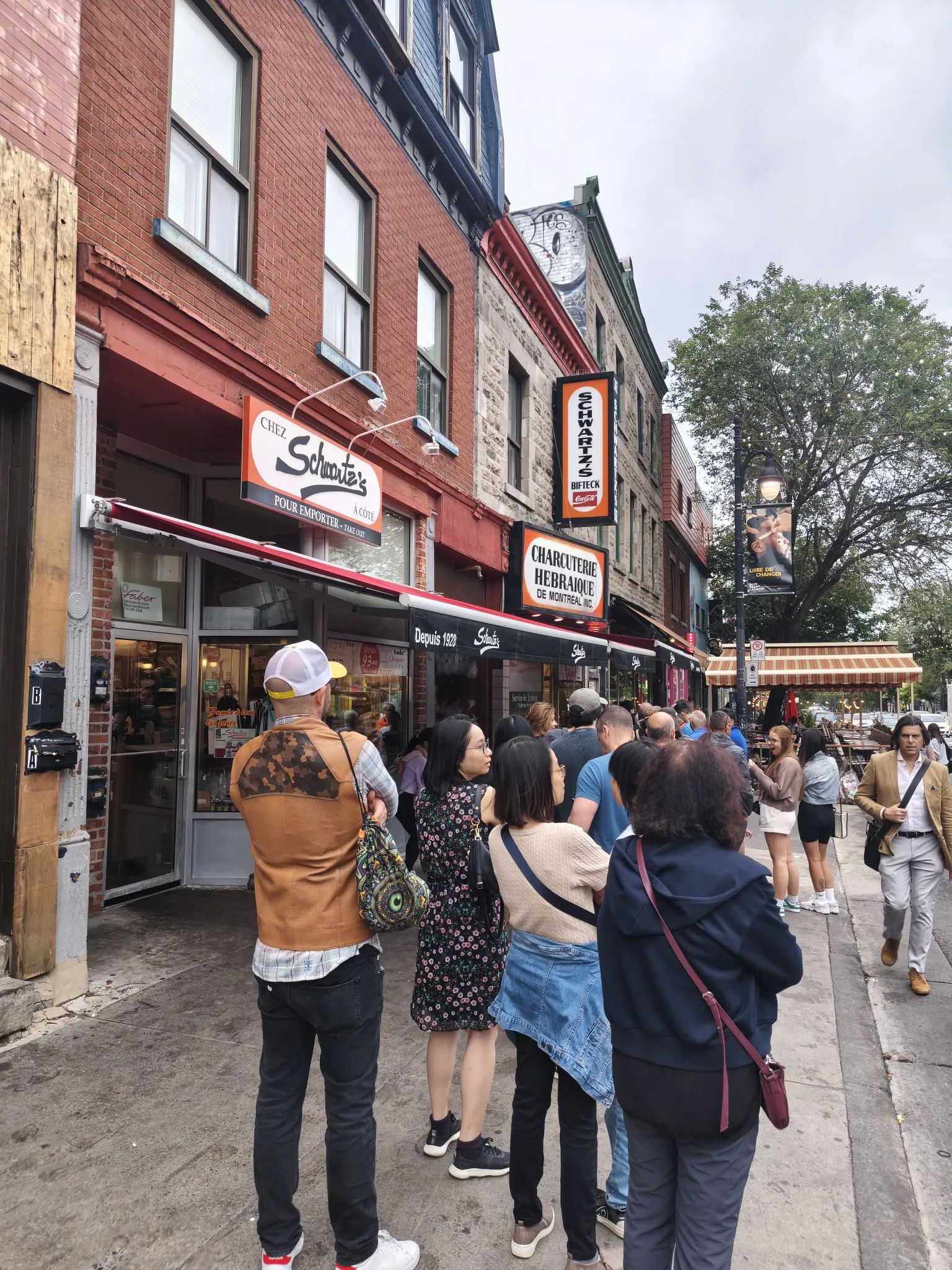 参观了大教堂,登上皇家山平台俯瞰了整个蒙特利尔,还去吃了网红熏肉三明治,儿子非要挑肥一点的,结果吃腻了。