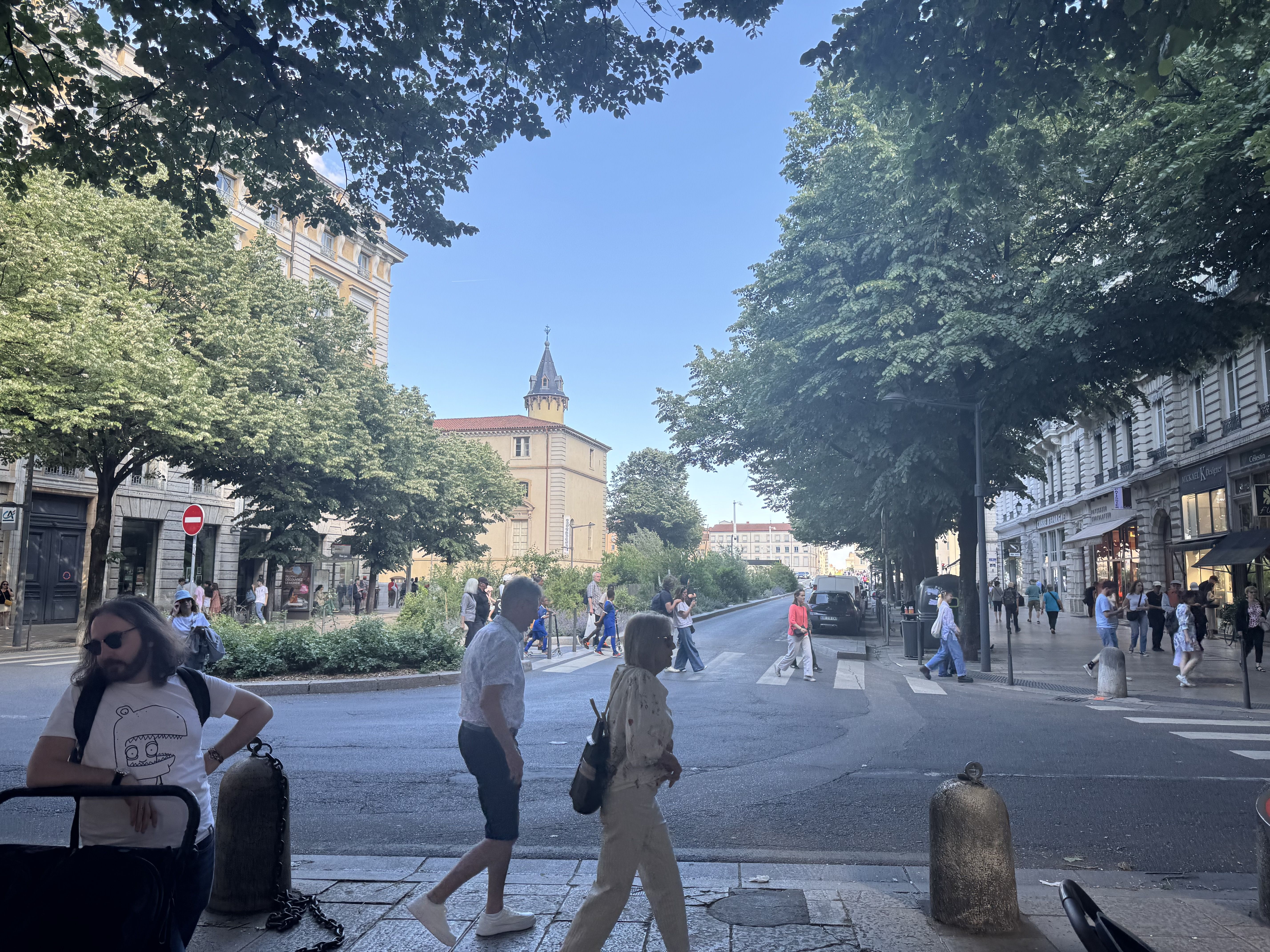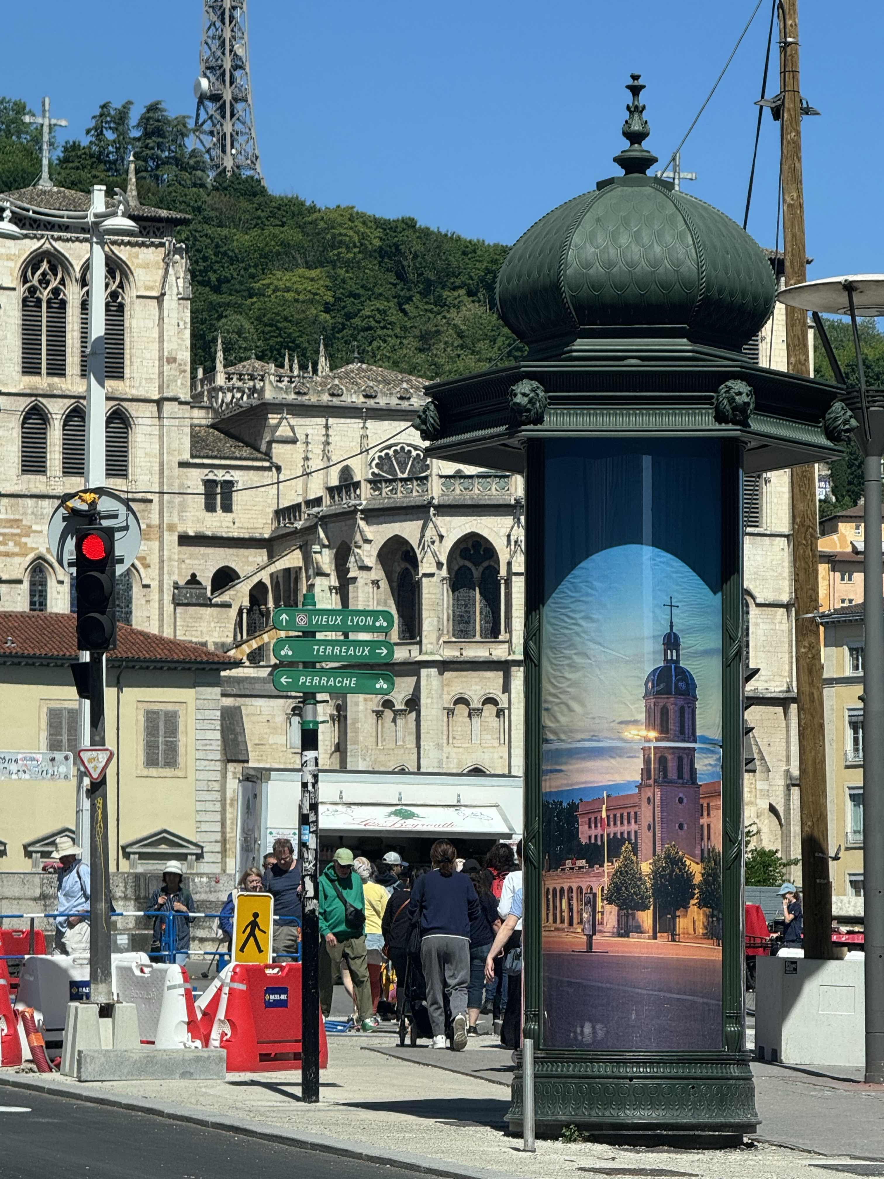 游完富维耶山后,我们驱车去酒店办理入住。稍作休息后,团长带着我们乘地铁前往里昂老城游览观光。我们住的酒店到老城、地铁只有六站,想不到的是我们买票后找方向、才发现这一站的地铁口左右两边在地下是不互通的[捂脸]团长很睿智、上去坐两站、出去调换方向OK里昂的地铁是无人驾驶,游客也可以清晰地看到地铁两旁及轨道。