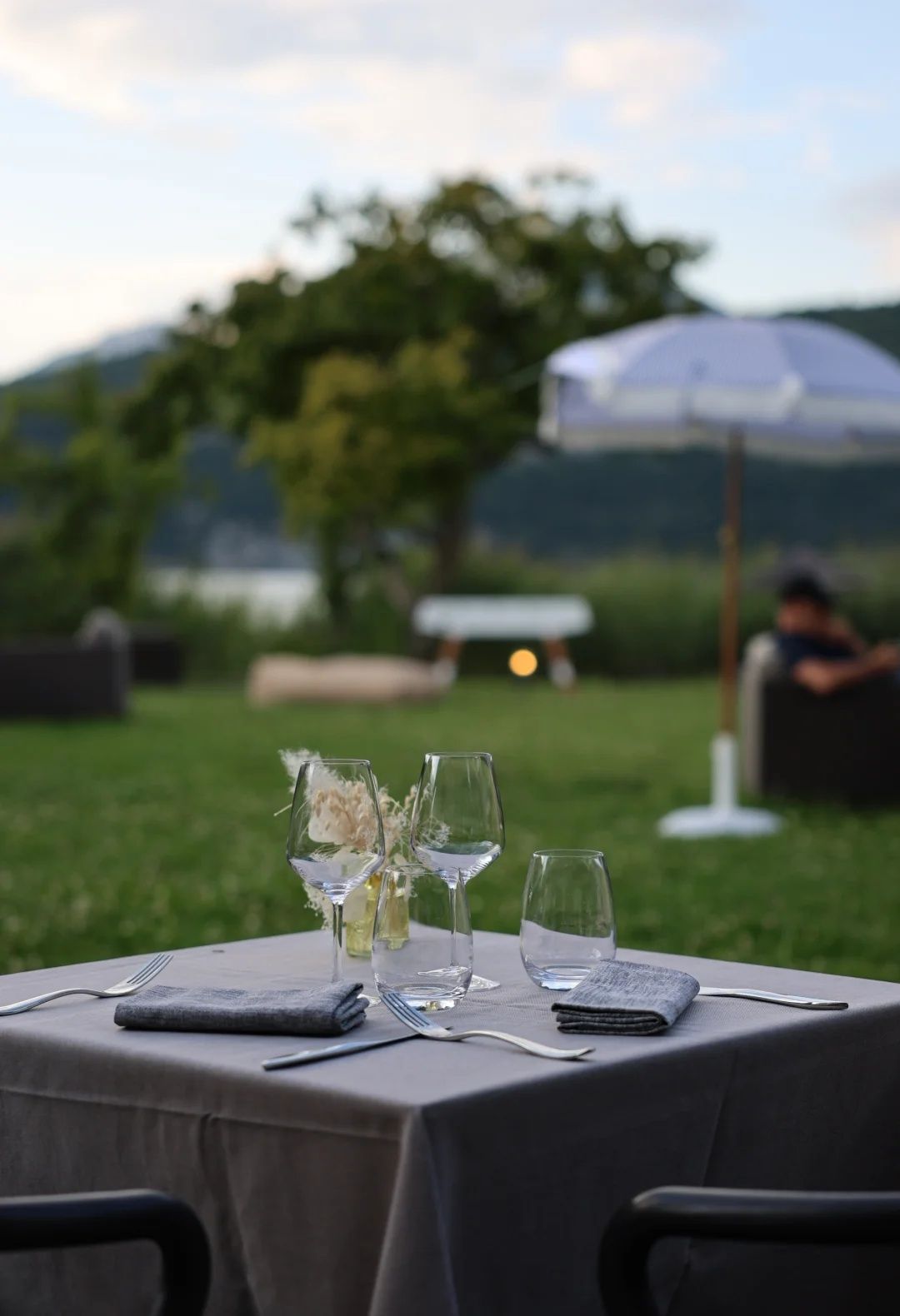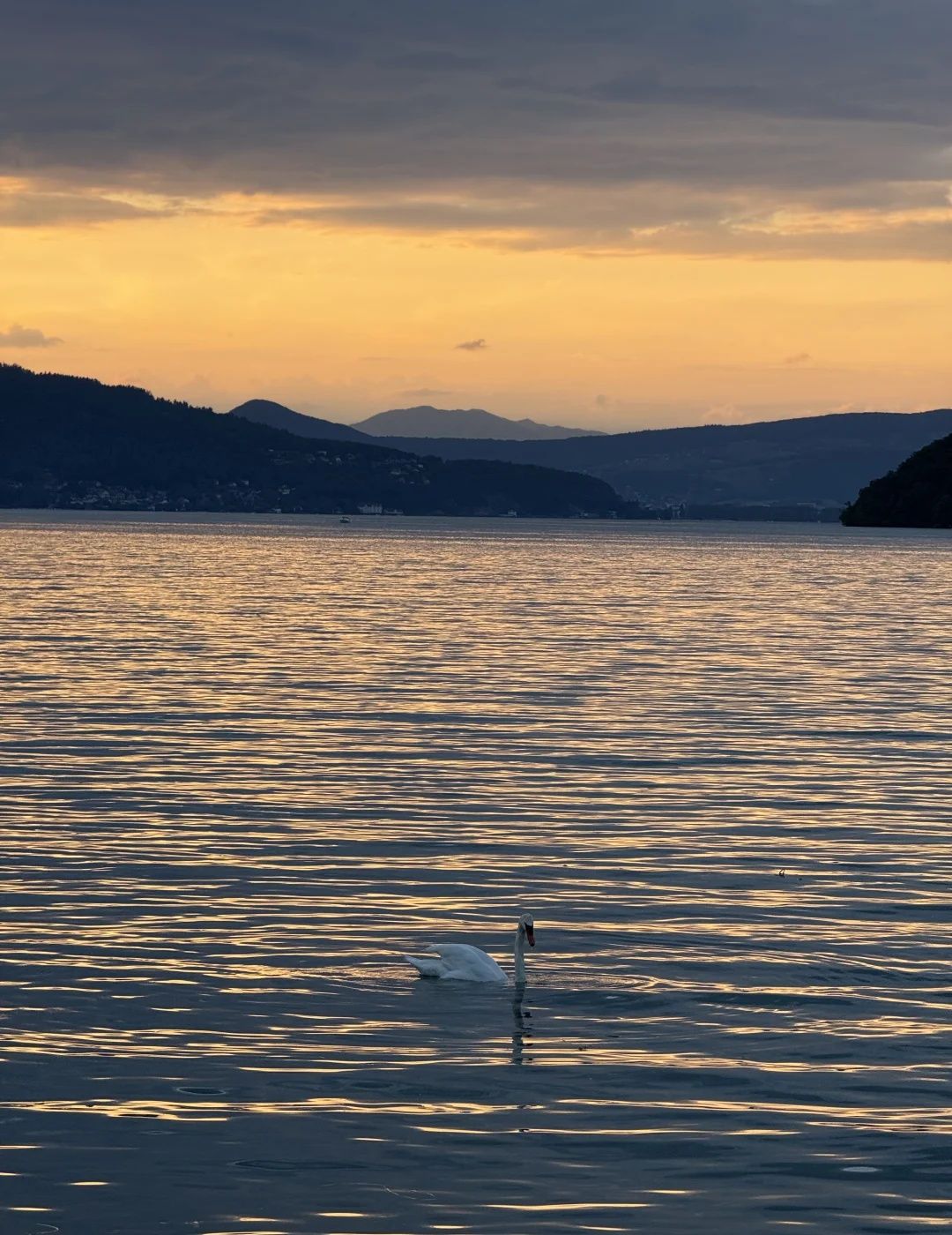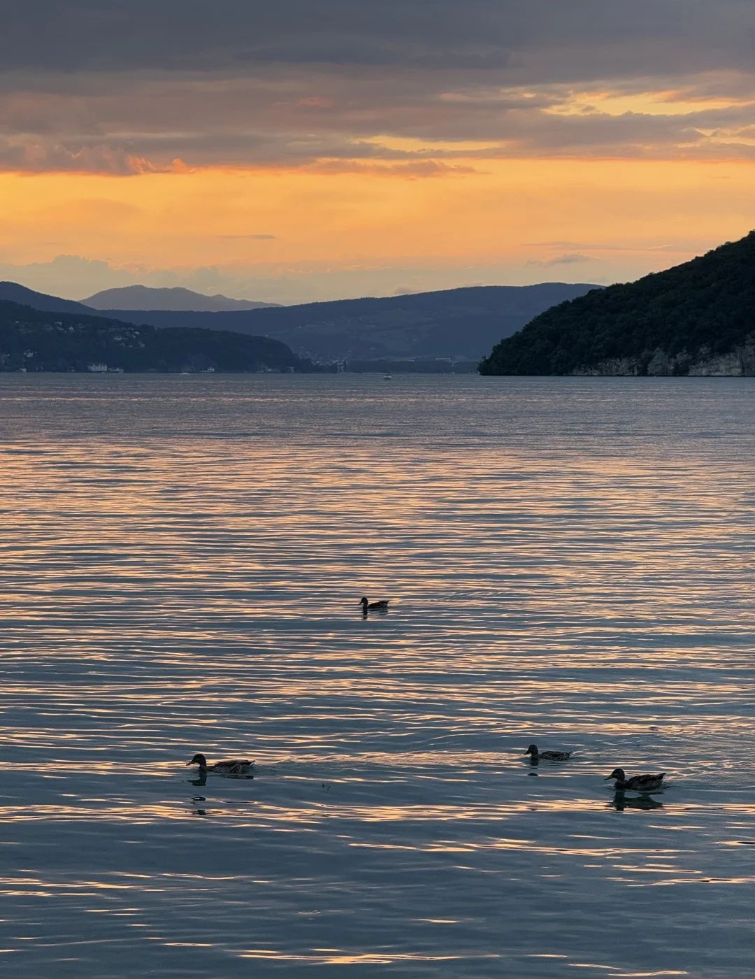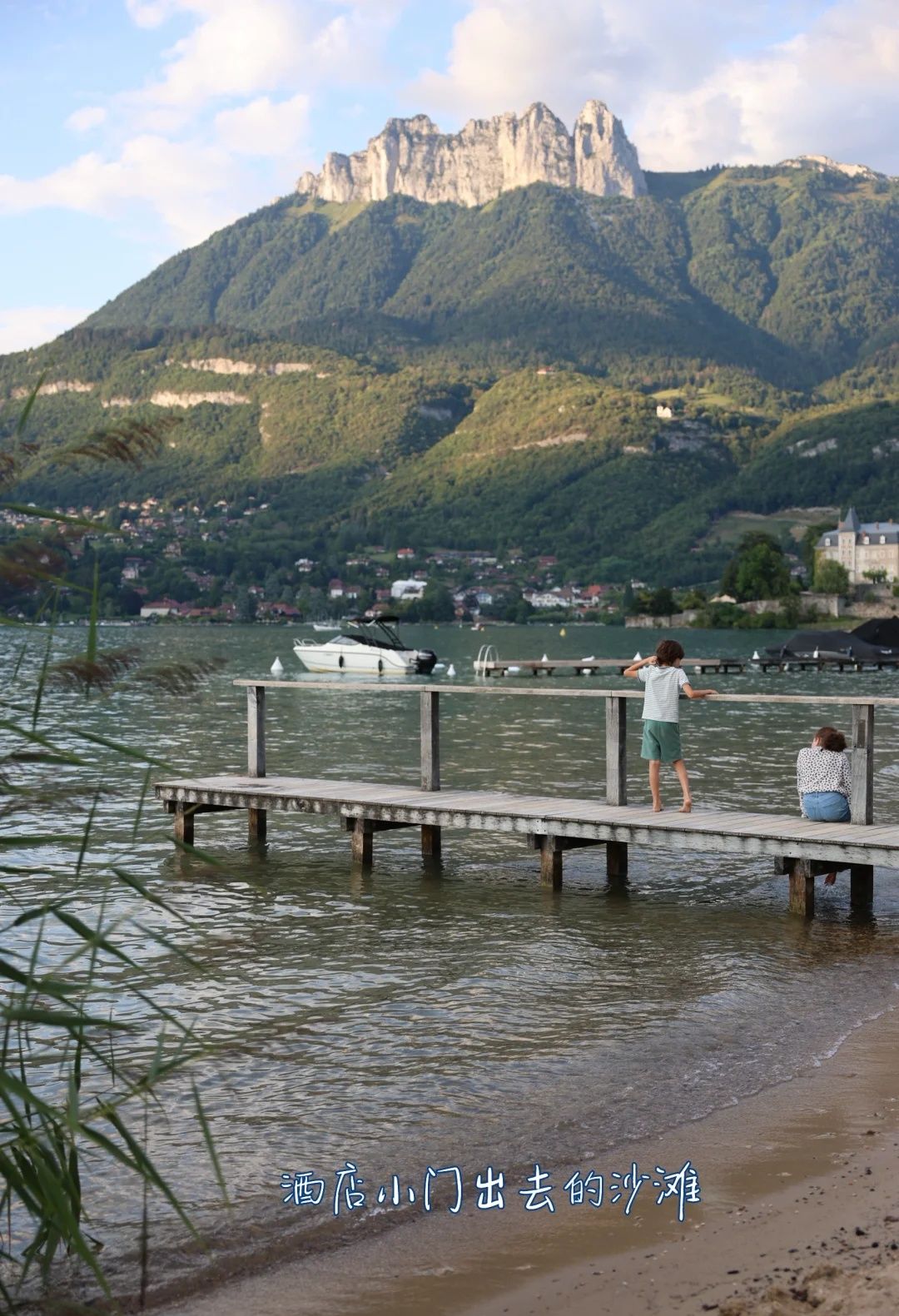 直到,开进酒店的封闭停车场,进了门,一瞬间感觉跟人潮隔开了。办理入住时前台说看我从瑞士来直接把园景小房升级成湖景大房!停车免费还有充电桩。酒店独享了大片漂亮草地,小门出去有私密的小沙滩,有Spa,自己的餐厅和隔壁的餐厅都很棒!价格也没有溢价很多。晚上吃完饭就湖边浅滩走走看夕阳,这一片非常安静。门口也有公交直达安纳西中心。