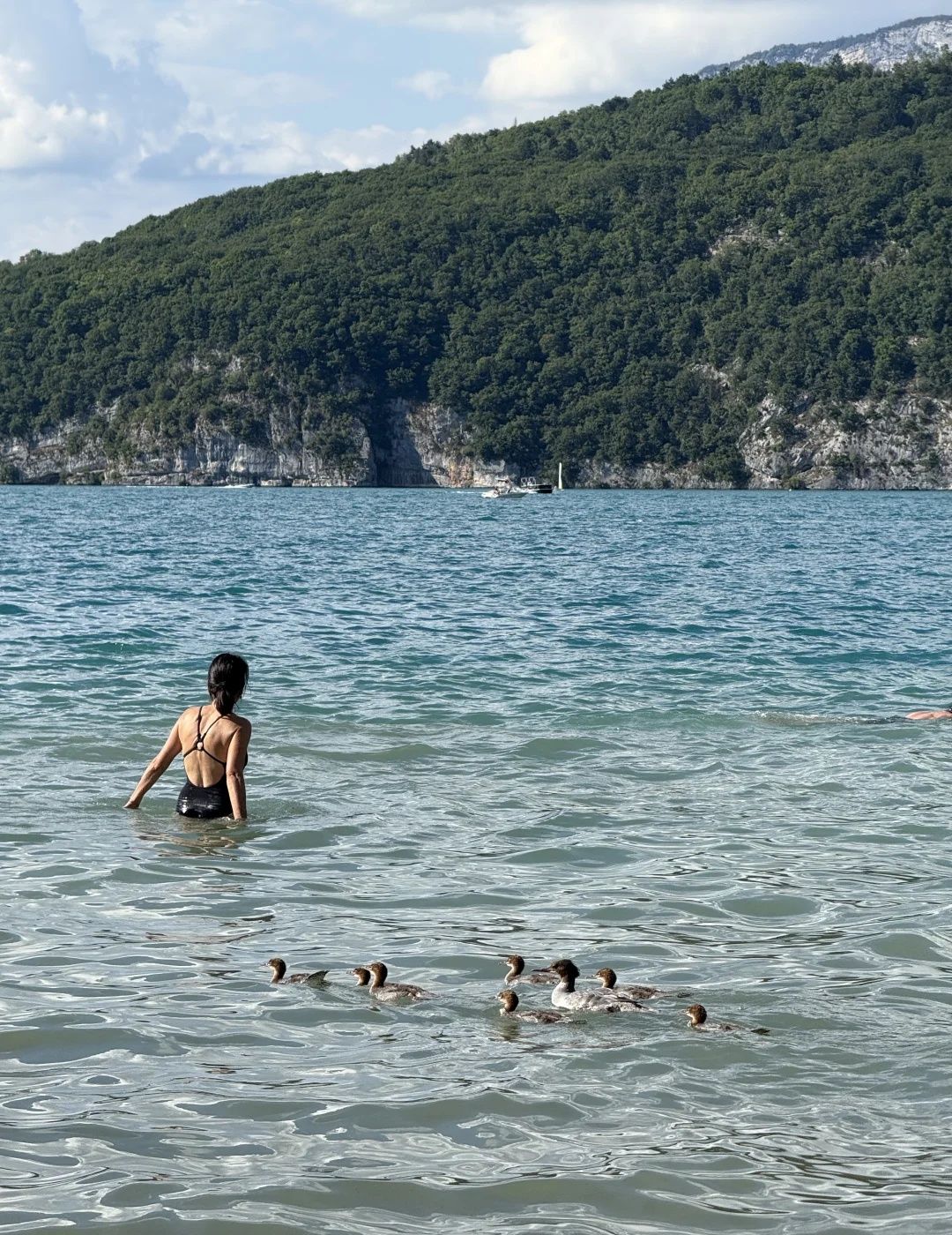 Anyway,在瑞士看了这么多湖,安纳西湖还会惊艳我吗?怎么说呢,有湖有山,又是大晴天,漂亮还是漂亮的。但是跟瑞士很多湖风格也差不多,游客却多很多倍。