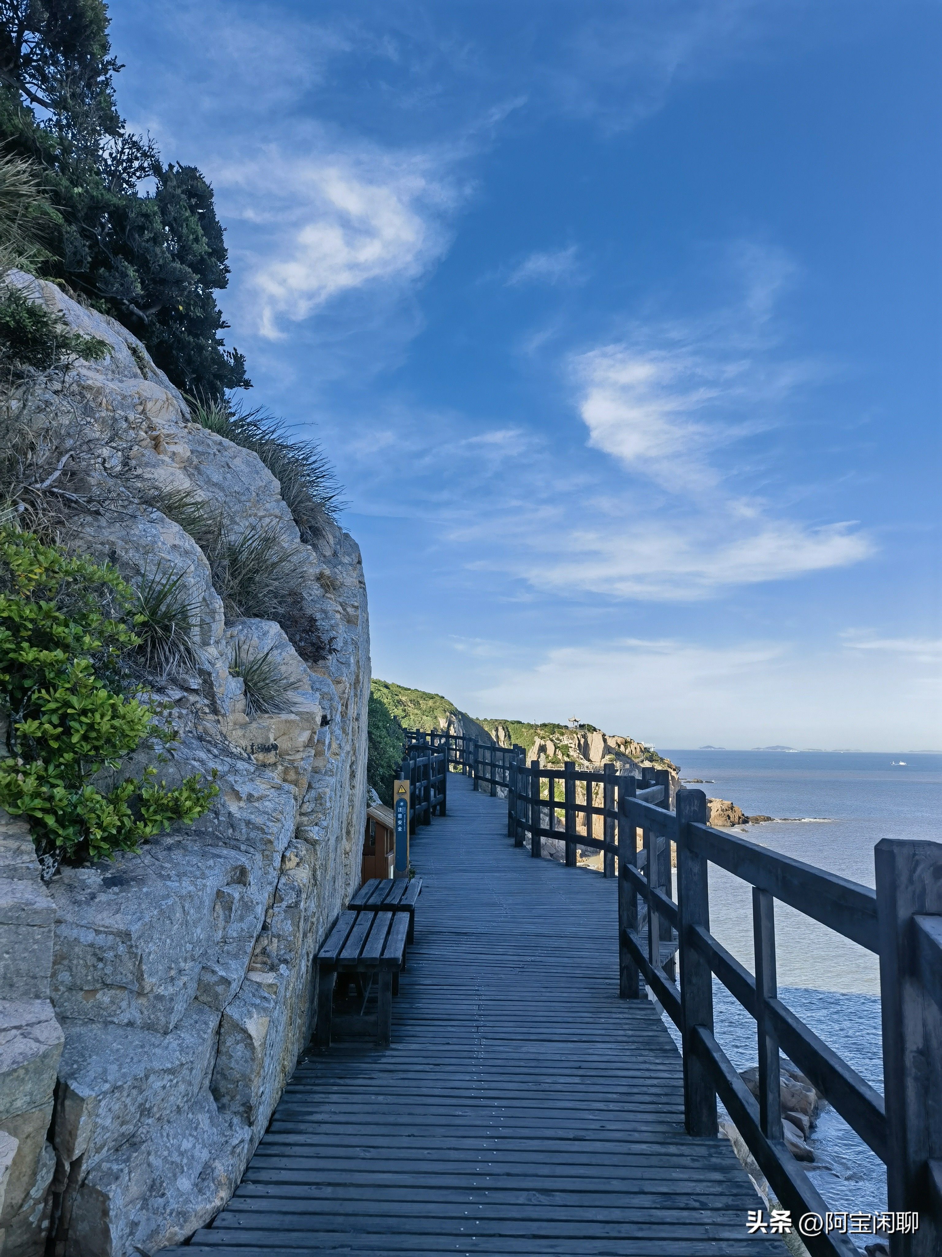 这两个景点主要有木栈道连接悬崖观海区域,以怪石嶙峋、惊涛拍岸为特色。六井潭的栈道要爬坡,我因膝关节不好没走。和尚套的栈道相对平坦,走一圈大约需半个小时。对于生活在沿海地区的我们来说,这两个景点总体感觉景色一般,但整个泗礁岛环山公路建得不错,道路平整,卫生清洁。来到嵊泗总要吃海鲜,但价格还是我的居住地便宜。在逛街时,我看到“嵊泗县民政和人力资源社会保障局”的牌子,觉得这才是大社保,有利减少政府部门机构设置和领导职数,蛮有特色。