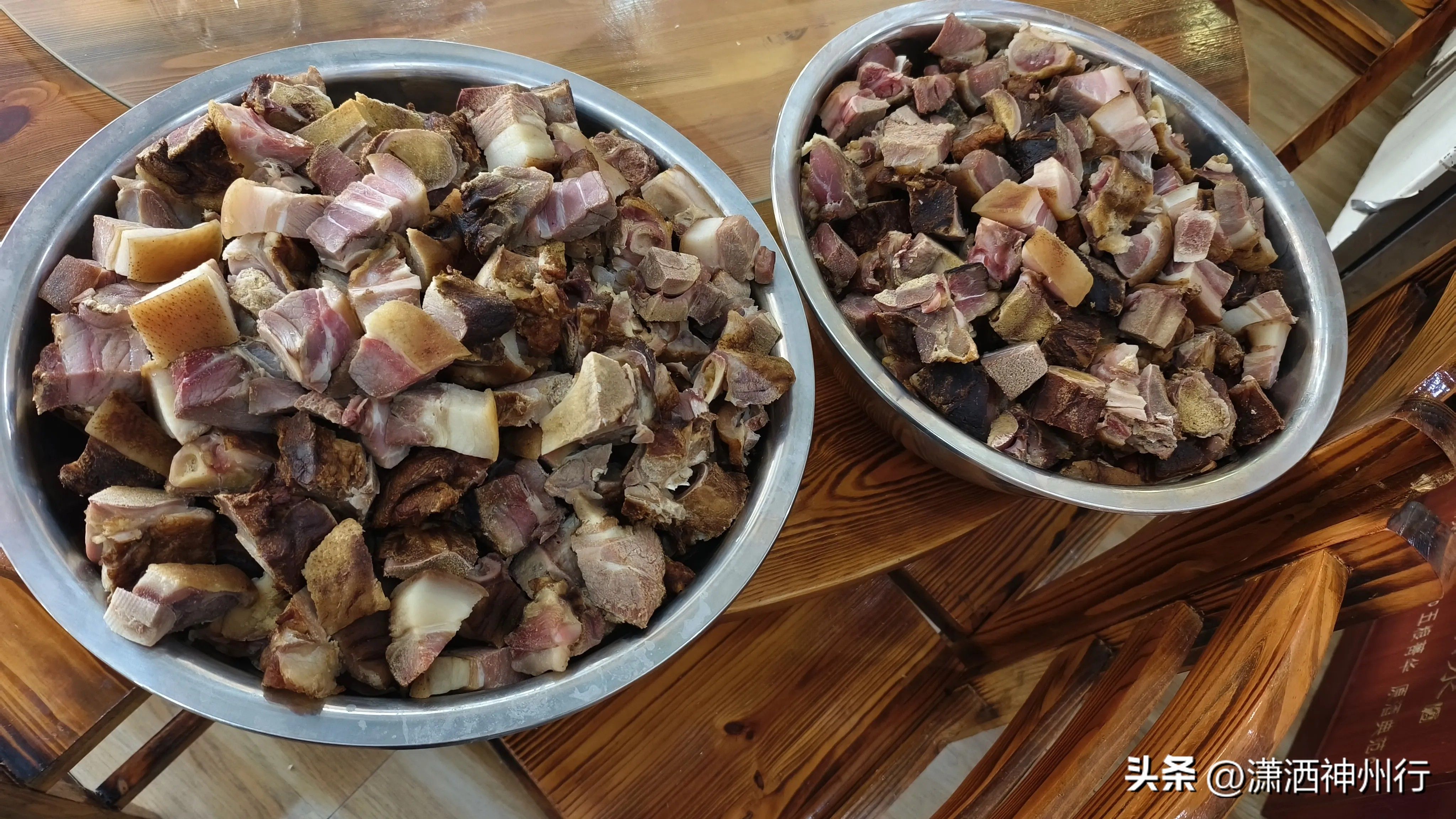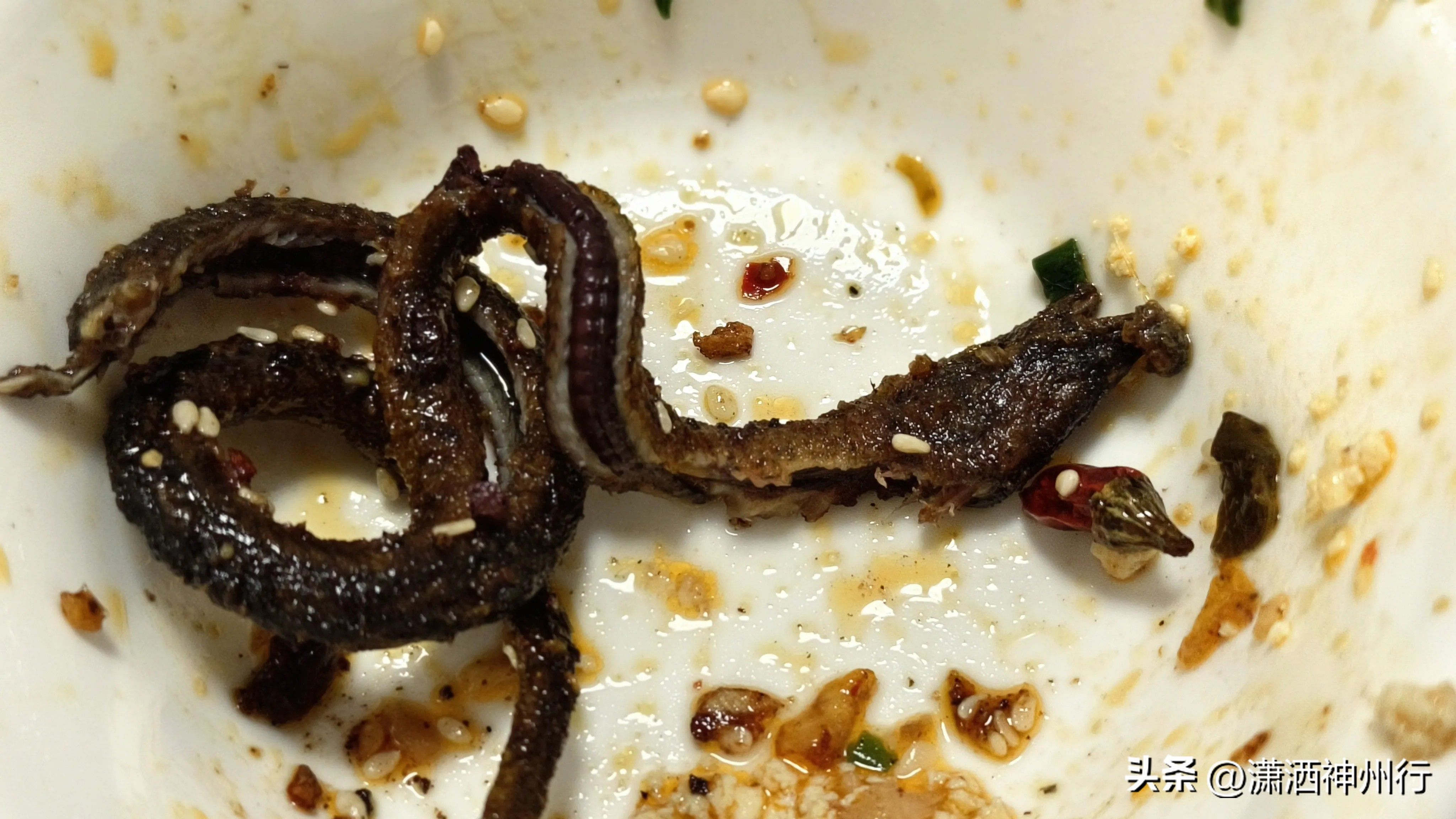 去大坝附近看了以后,朋友安排吃鱼,吃盘龙黄鳝。这个黄鳝从颜色和大小凭我经验判断是河沟或者田里抓的。我小时候抓到的黄鳝全都是这种小小条的,也只有一种做法就是盘龙黄鳝。吃黄鳝我可是蛮厉害的,我们要求是只能用筷子和嘴巴,不能用手去抓。筷子夹住黄鳝,用牙齿咬住黄鳝头部靠后背一点的地方,咬开一个口子,腾出筷子夹住黄鳝头轻轻一撕,黄鳝就被处理成了两半,内脏会跟腹部在一起,嘴里这一半可以直接吃掉,另一半把内脏处理就行了。这种黄鳝不能太大条,不然骨头太硬,也没那么容易盘起来,炸的时候也不好炸透就是筷子头粗细最好。这个菜做的很是香辣,非常过瘾。这一餐还有个腊猪舌——我就说这里超喜欢腊味吧。还有豆腐炒白菜,这些菜我都很喜欢。