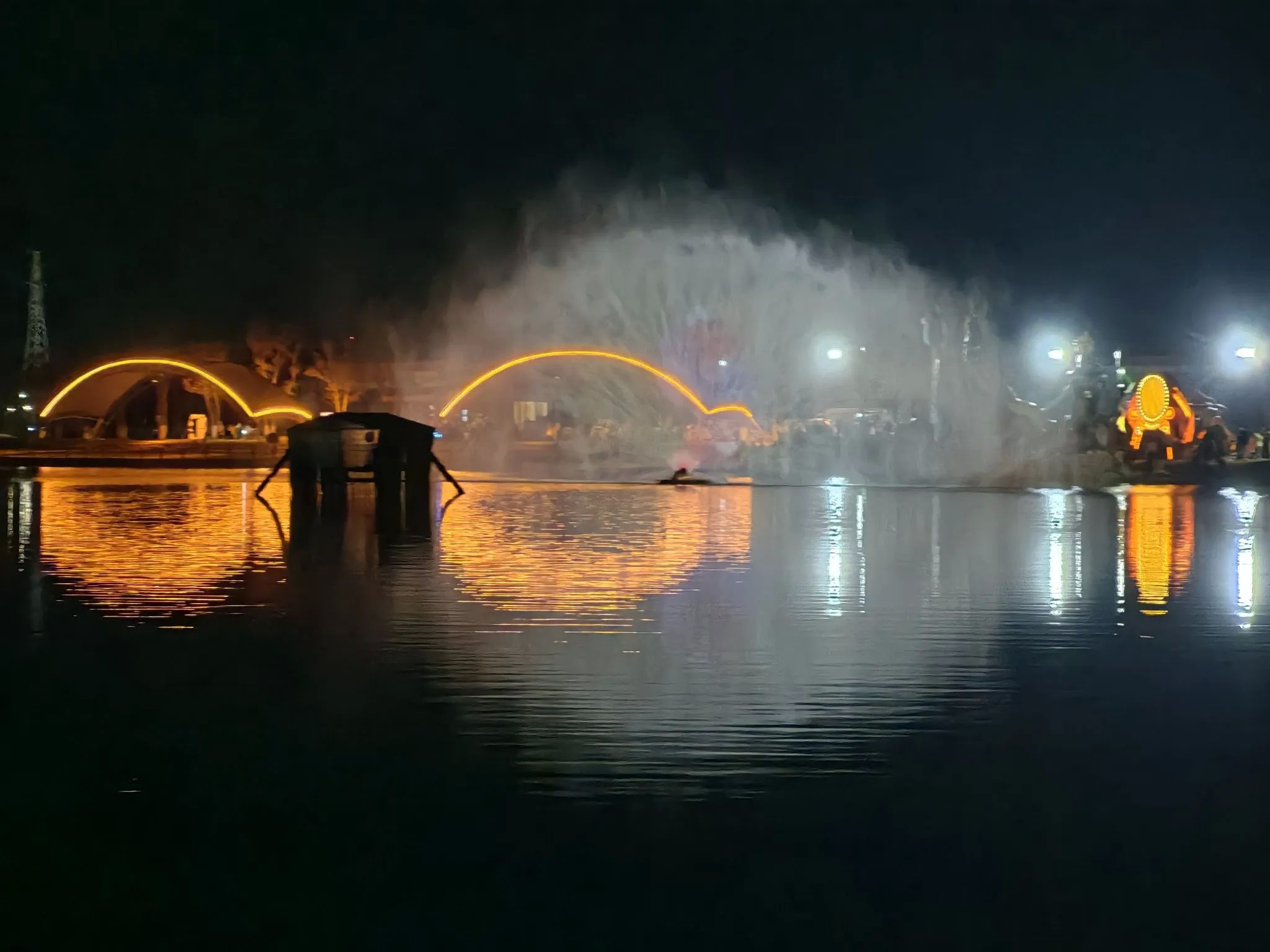 济南商河的3A景区清水湖公园新推出了水幕电影
