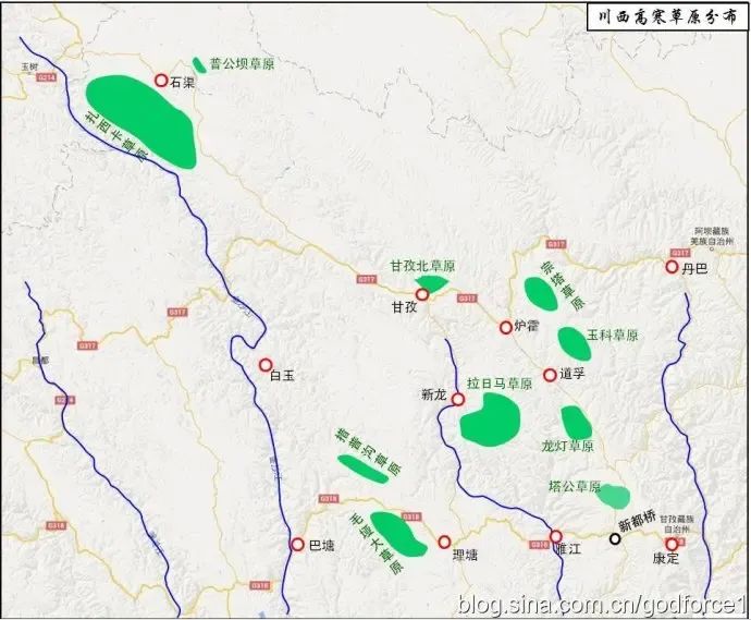 有新都桥塔公、理塘毛垭、色达金马、道孚(龙灯、玉科)、巴塘章德和康定格西大草原等。