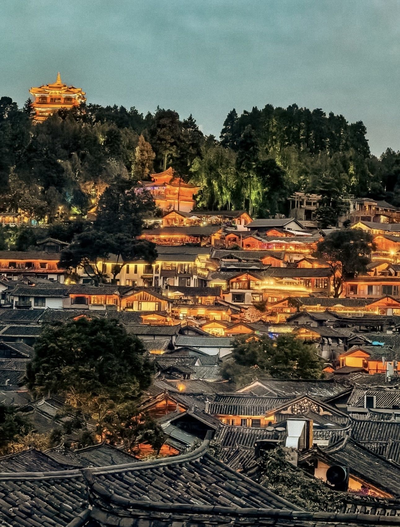丽江古城(云南),以前茶马古道的重要地方,满满的纳西文化味儿。晚上的古城,灯火通明,热闹得不行,小桥流水、古街古巷,浪漫得很,年轻人都爱来这,占游客量的60%。
