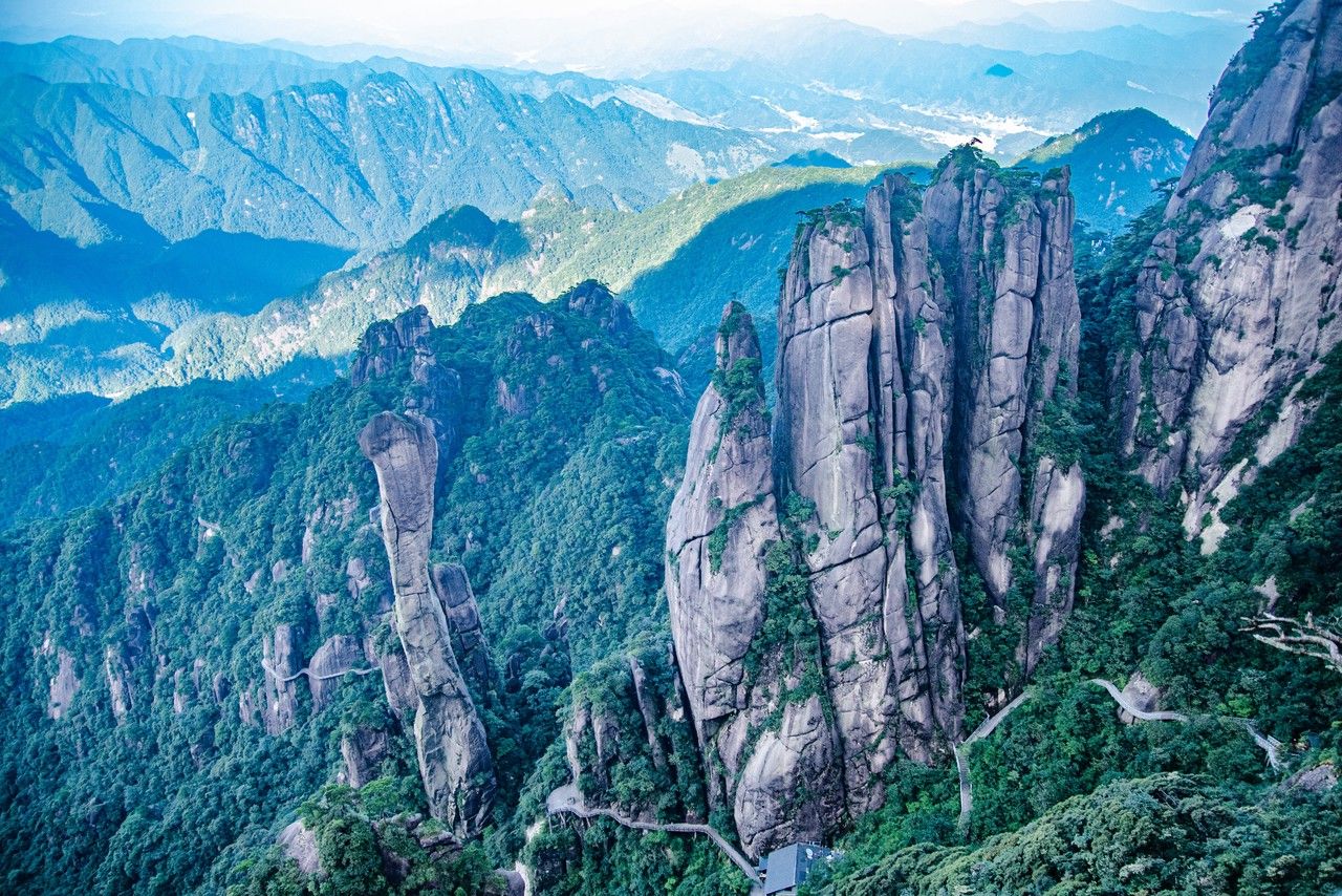2. 三清山风景名胜区:世界自然遗产,以奇特的花岗岩峰林和道教文化闻名,“巨蟒出山”“女神峰”等景观惟妙惟肖。