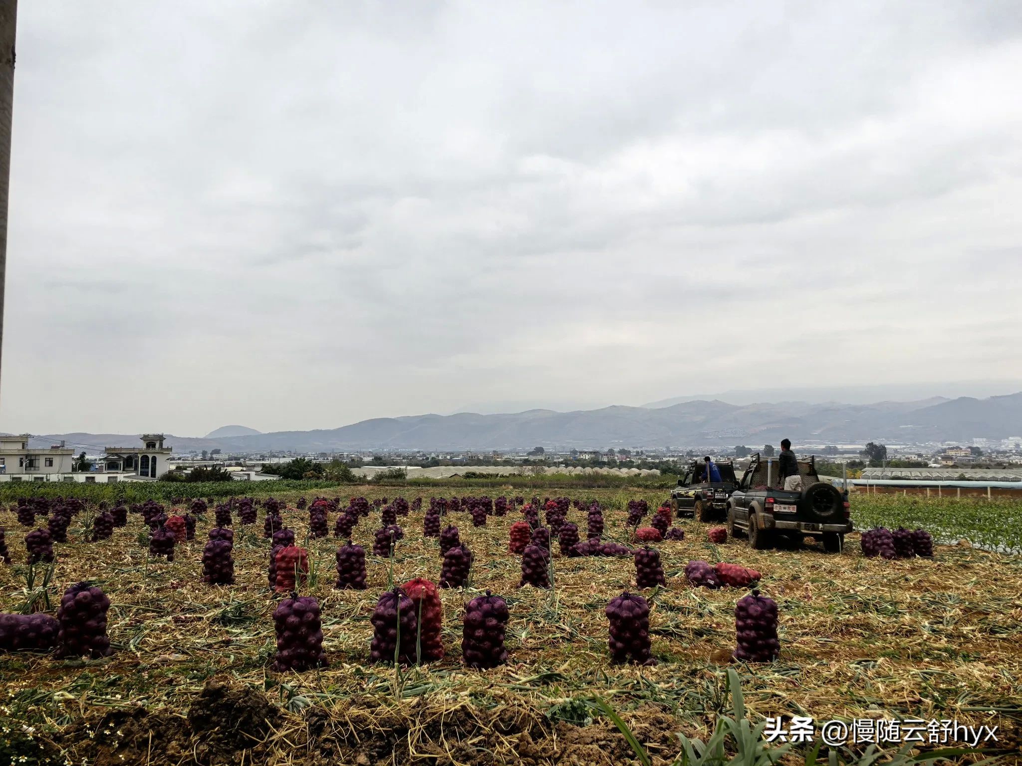 图17-18回程路上,误入了春天的田野:码成垛的紫甘蓝,收菜的皮卡车……