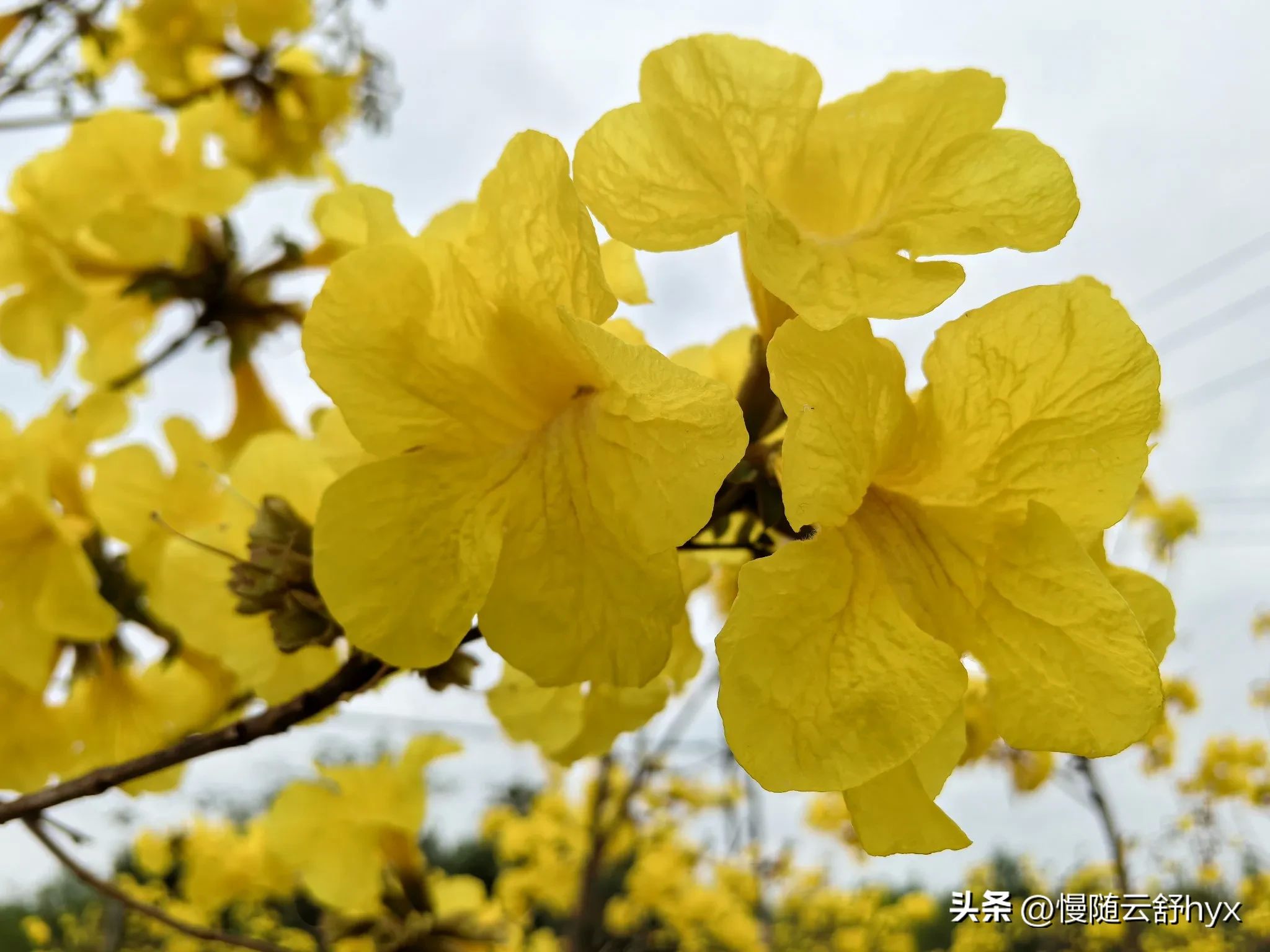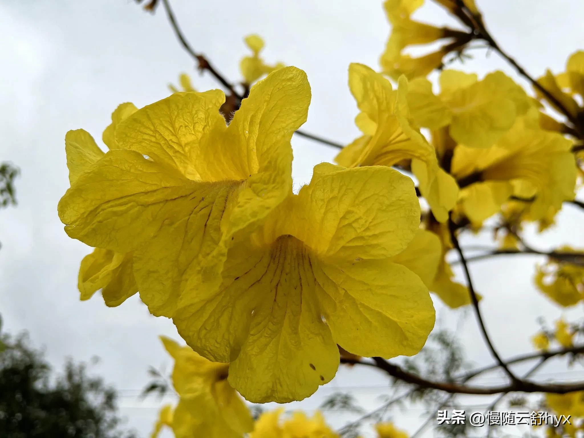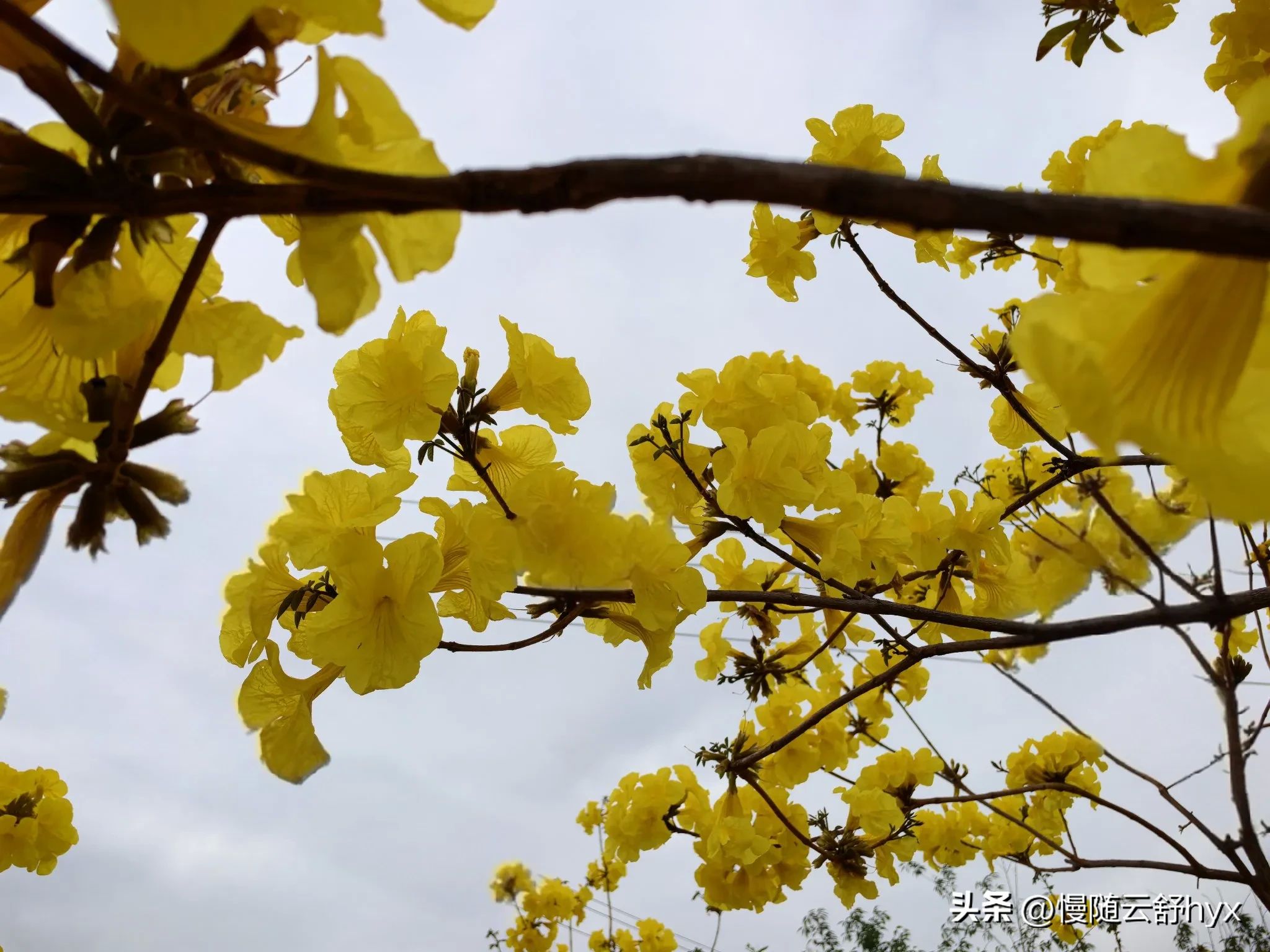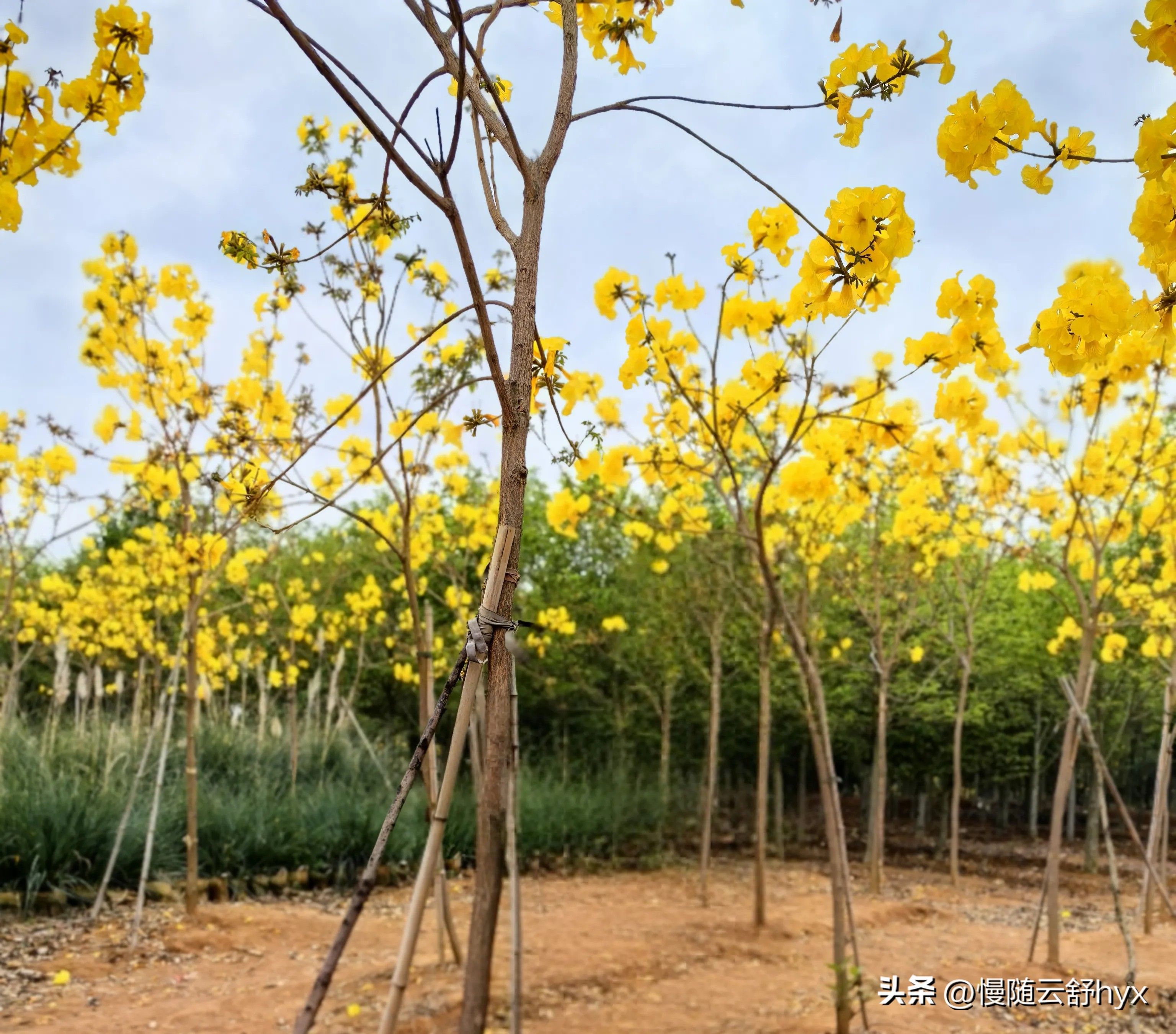 [思考]黄花风铃——又名“黄金风铃木”“黄钟木”,是紫葳科风铃木属的落叶乔木(可高达15米),原产于中南美洲热带地区。花冠呈喇叭状。花期通常在2月-4月,一般先开花后长叶。耐旱不耐寒 。还有红花风铃。