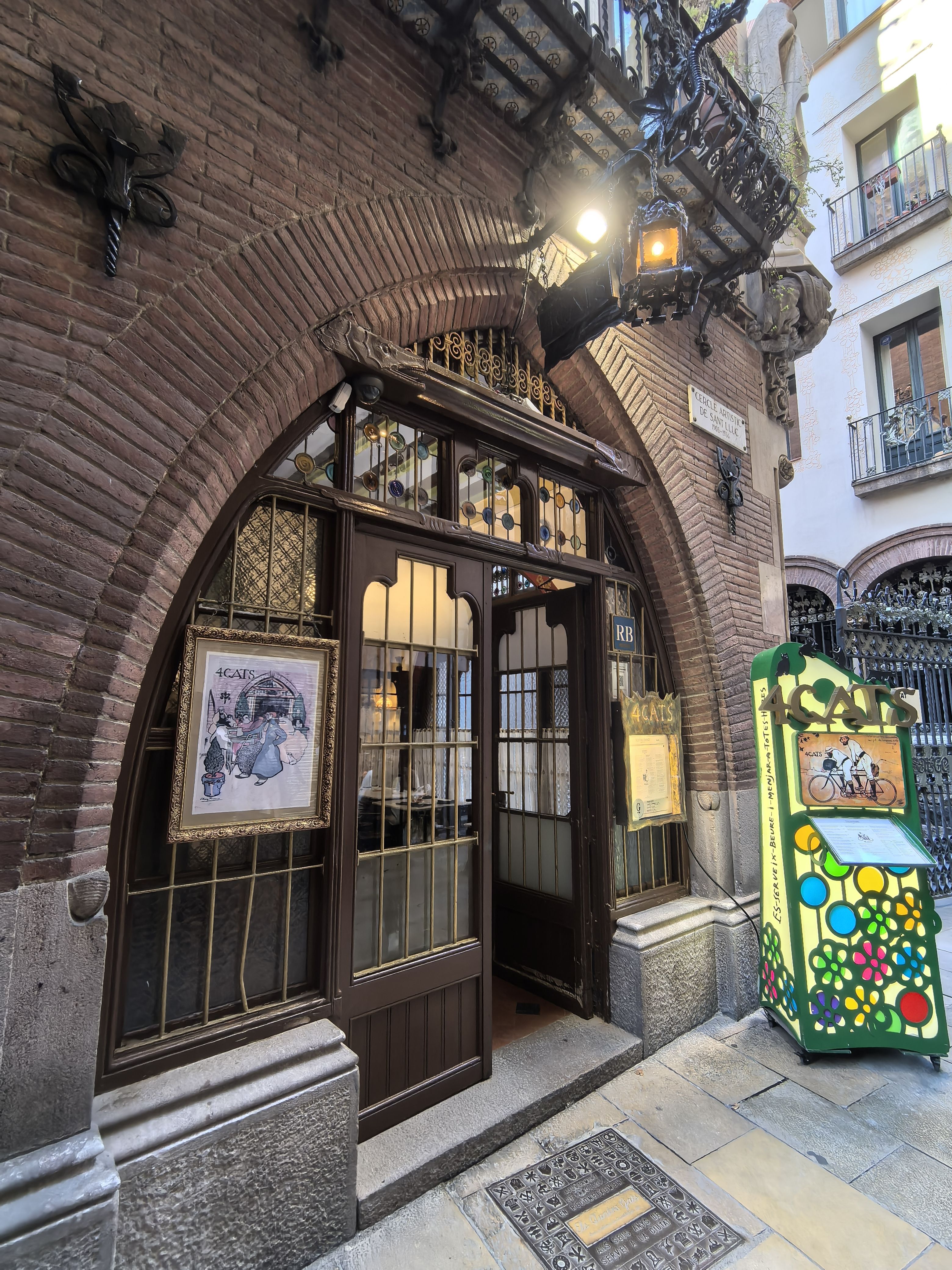 四只猫咖啡厅,由建筑师普伊赫卡达法尔克于1895年设计,自1879年开业至今,历史悠久,是巴塞罗那知名的文化艺术场所。毕加索曾常来此光顾,还为咖啡馆设计了海报和菜单。