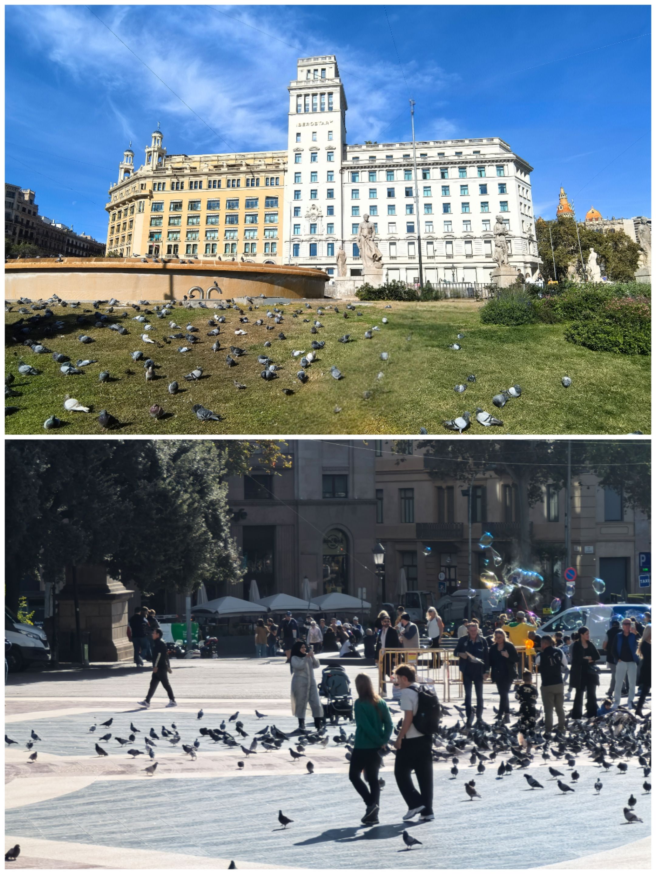 加泰罗尼亚广场,亦称鸽子广场,是巴塞罗那旧城区的大型广场,也是几条重要道路的交汇之处。它以喷泉和雕塑著称,是购物与餐饮的汇聚之地。