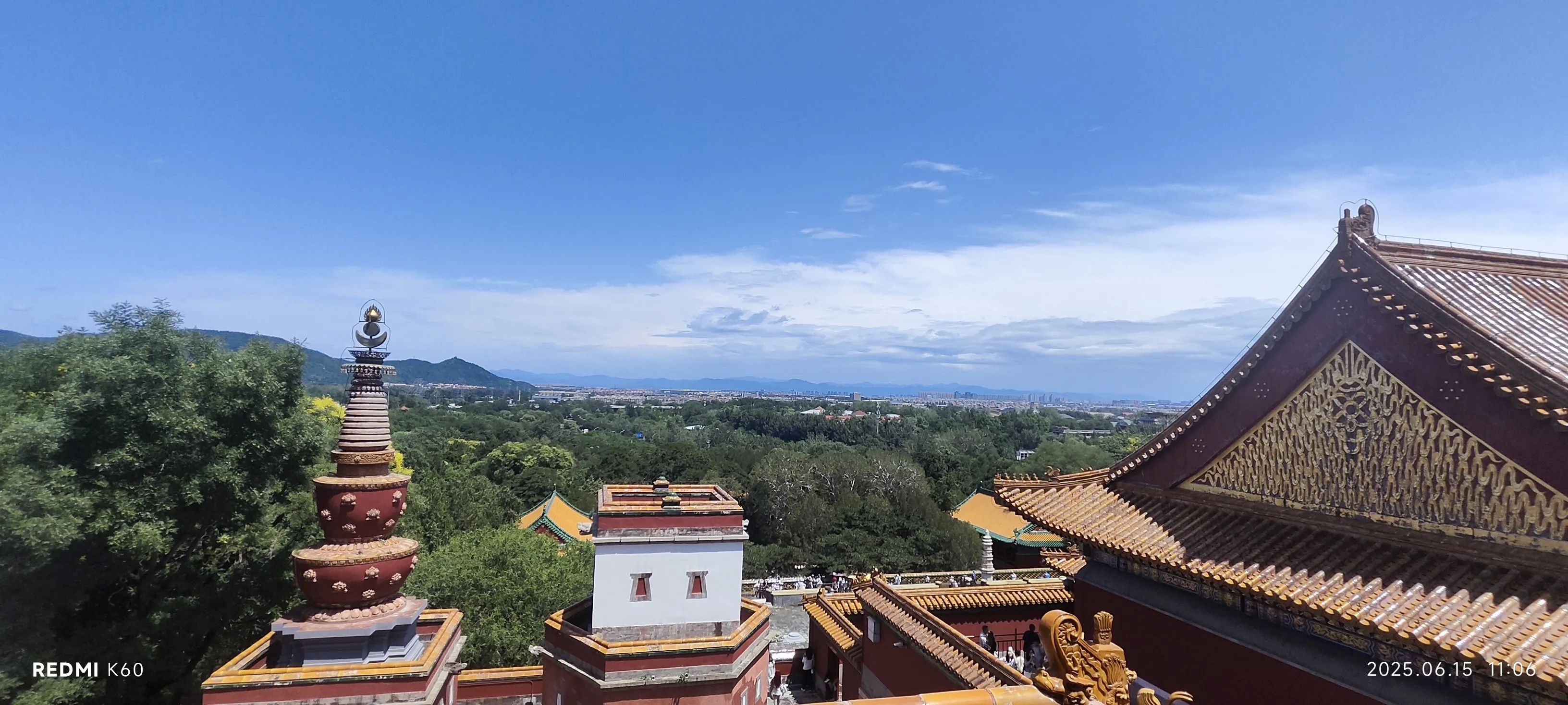 雨后的京城透亮明快,果然不负所望,出片效果超预期,后悔没带单反,只能用手机凑合随手拍几张,这么些年第一次感觉颐和园还挺漂亮的。刚来北京那会一般都是从清华北大那边的新建宫门进来,那个时候佛香阁排云殿都还是免费的,还有智慧海十七孔桥铜牛石舫等这些都是一掠而过。这几年颐和园旅游的人从来没少过,无论什么时候去都是乌泱乌泱的,体验感很不好,所以基本都是走西堤,或者去后山。今天我们从北宫门进,孩子妈妈说趁今天天气好,带二宝爬完四大部洲然后直接去画中游,再顺着长廊的昆明湖边从东宫门出。正常出门玩我一般不怎么喜欢拍照的,今天的景色不错,必须分享一下。