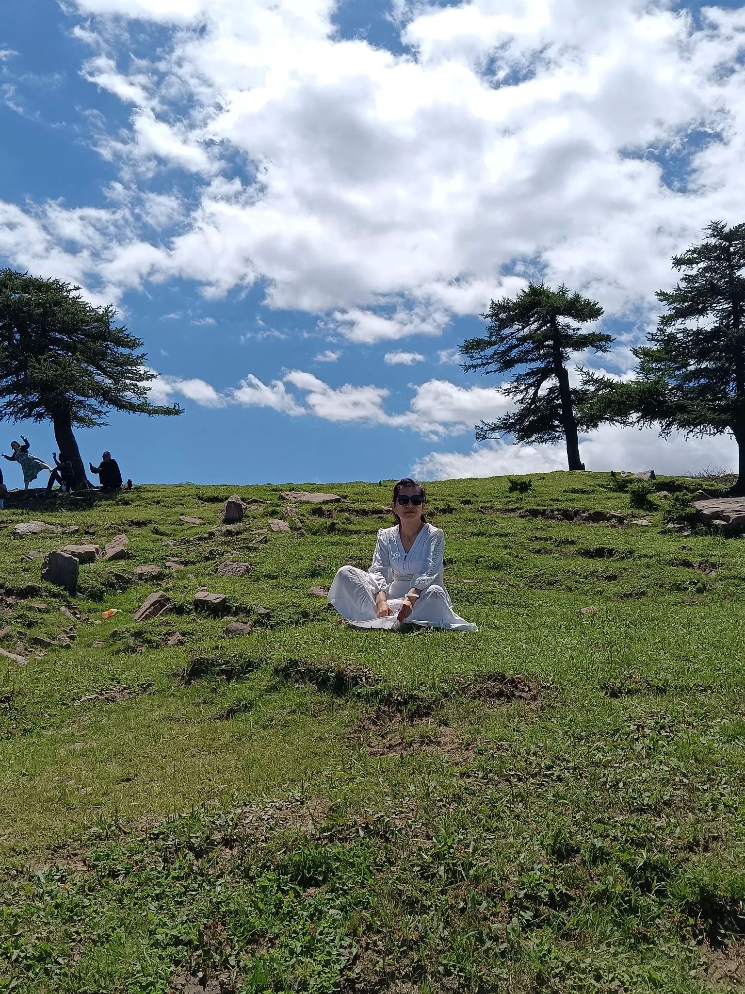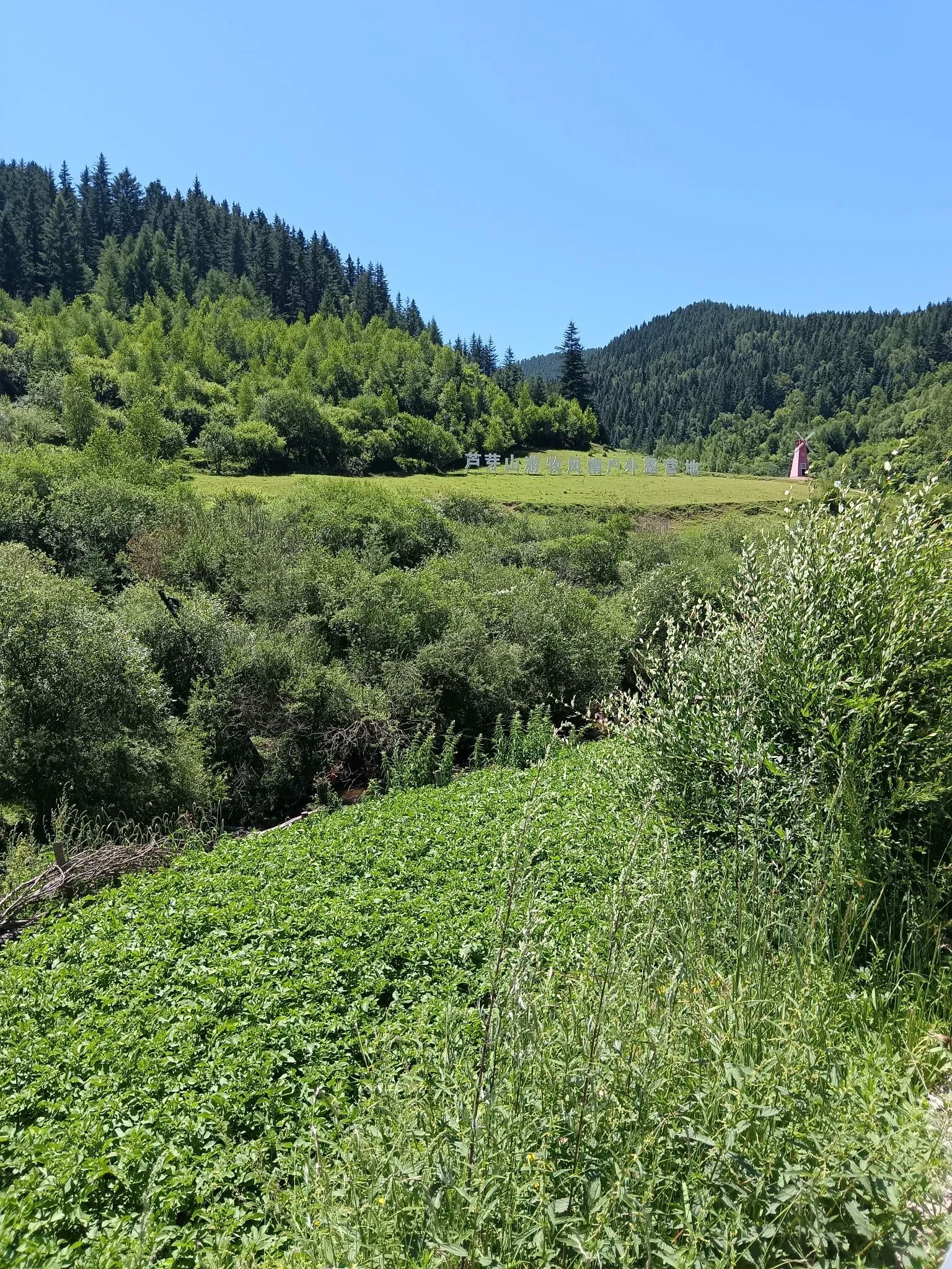 我们17号去马仑草原,出发时间有点晚。去景区的路还算好走,有一段山路弯道较多,但对熟练的司机来说没什么难度。到景区的时候差不多11点了,景区门口的第一停车场已经满了,只能停在第二停车场,步行大概500米到票务中心买票后乘坐景交大巴上山,进了景区山路变得又陡又弯,景区让换乘景交大巴是有道理的,而且上山的路程挺远,大巴开了二十多分钟,25元往返的车票价格真的很划算。