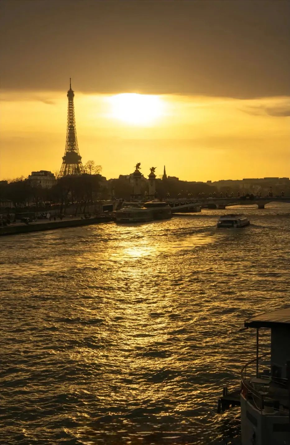 塞纳河,像一条蓝色的丝带,蜿蜒穿过巴黎城。乘坐游船,沿着塞纳河缓缓前行,欣赏着两岸的风景。河岸边的古老建筑、悠闲的行人、浪漫的咖啡馆,构成了一幅美丽的画卷。在夕阳的余晖中,塞纳河波光粼粼,两岸的灯光逐渐亮起,整个巴黎城仿佛变成了一个梦幻的世界。