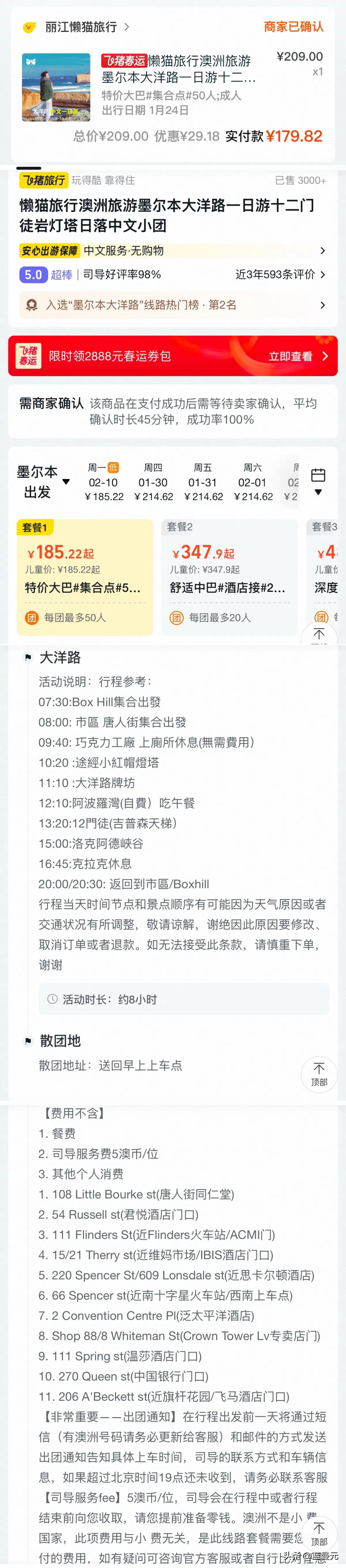 也考虑过租车,但大洋路景点不多,租一天往返五六百公里,太折腾了。