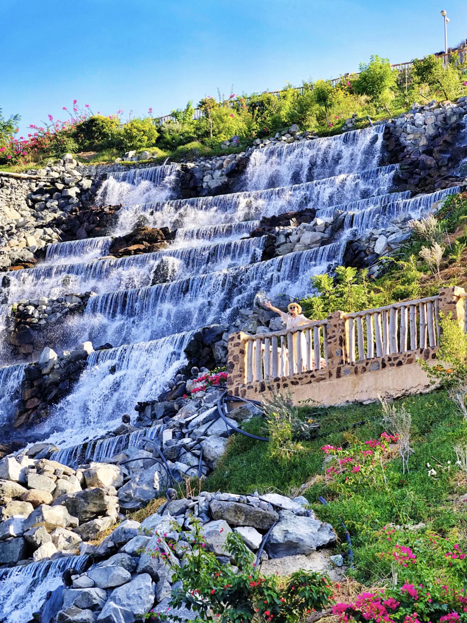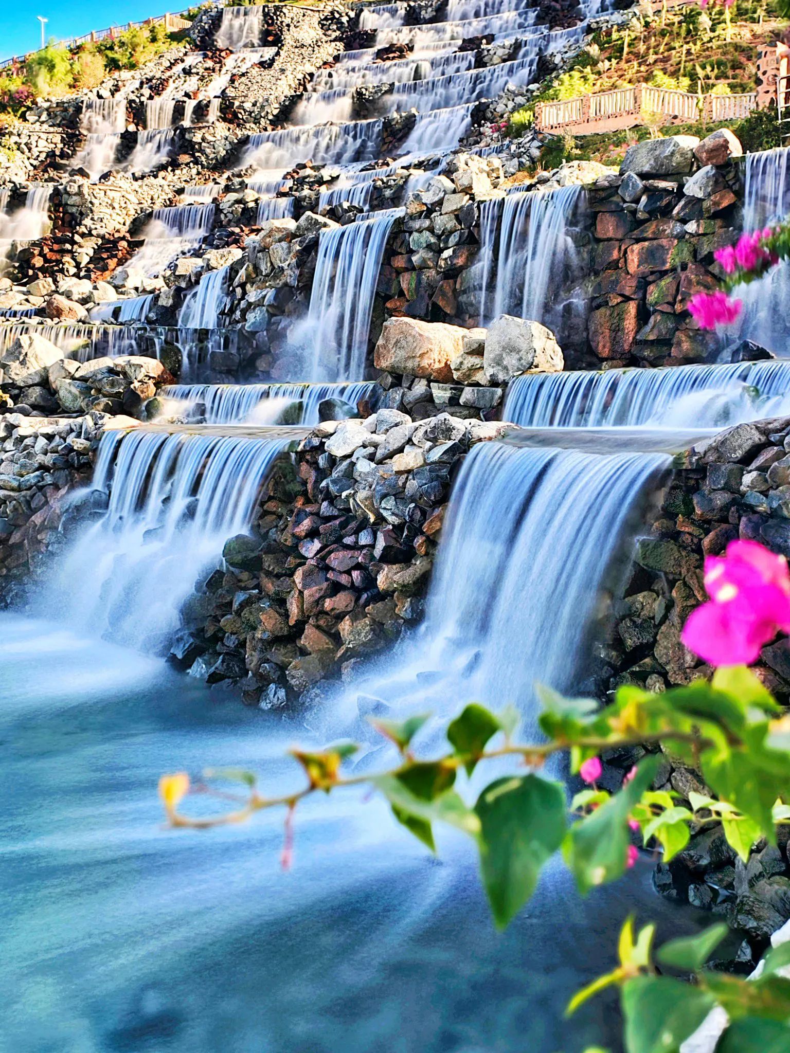 卡尔巴空中花园(Hanging Garden Kalba)是沙迦的一颗绿色明珠,它坐落在卡尔巴的山丘之上,占地约160万平方英尺,拥有超过10万棵树木和54种植物。花园的中心是一座壮观的人工瀑布,水流从高处倾泻而下,汇入一个小湖,周围环绕着精心修剪的草坪和花坛。在这里,你可以沿着蜿蜒的小径漫步,欣赏自然之美;也可以在760米的跑道上慢跑,感受运动的乐趣。