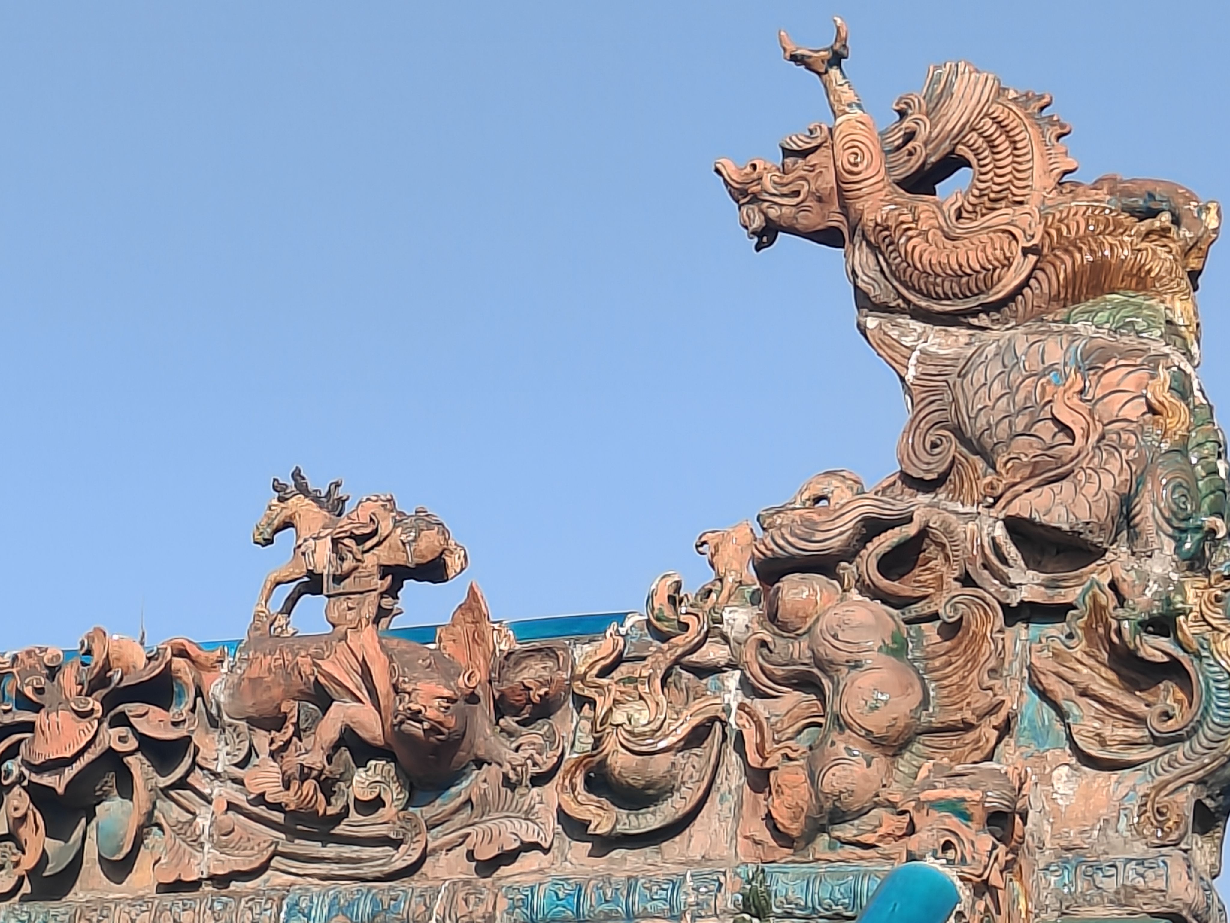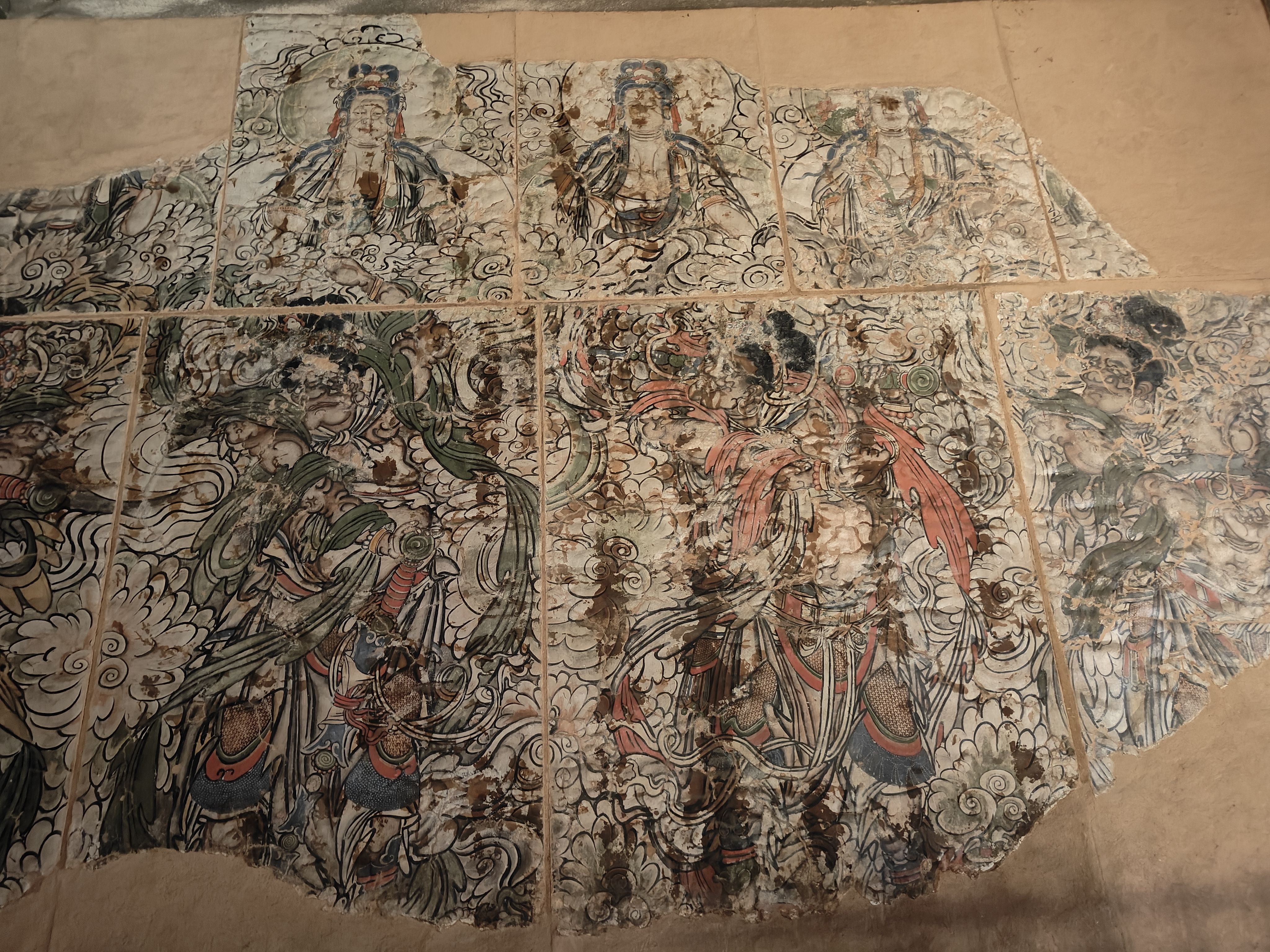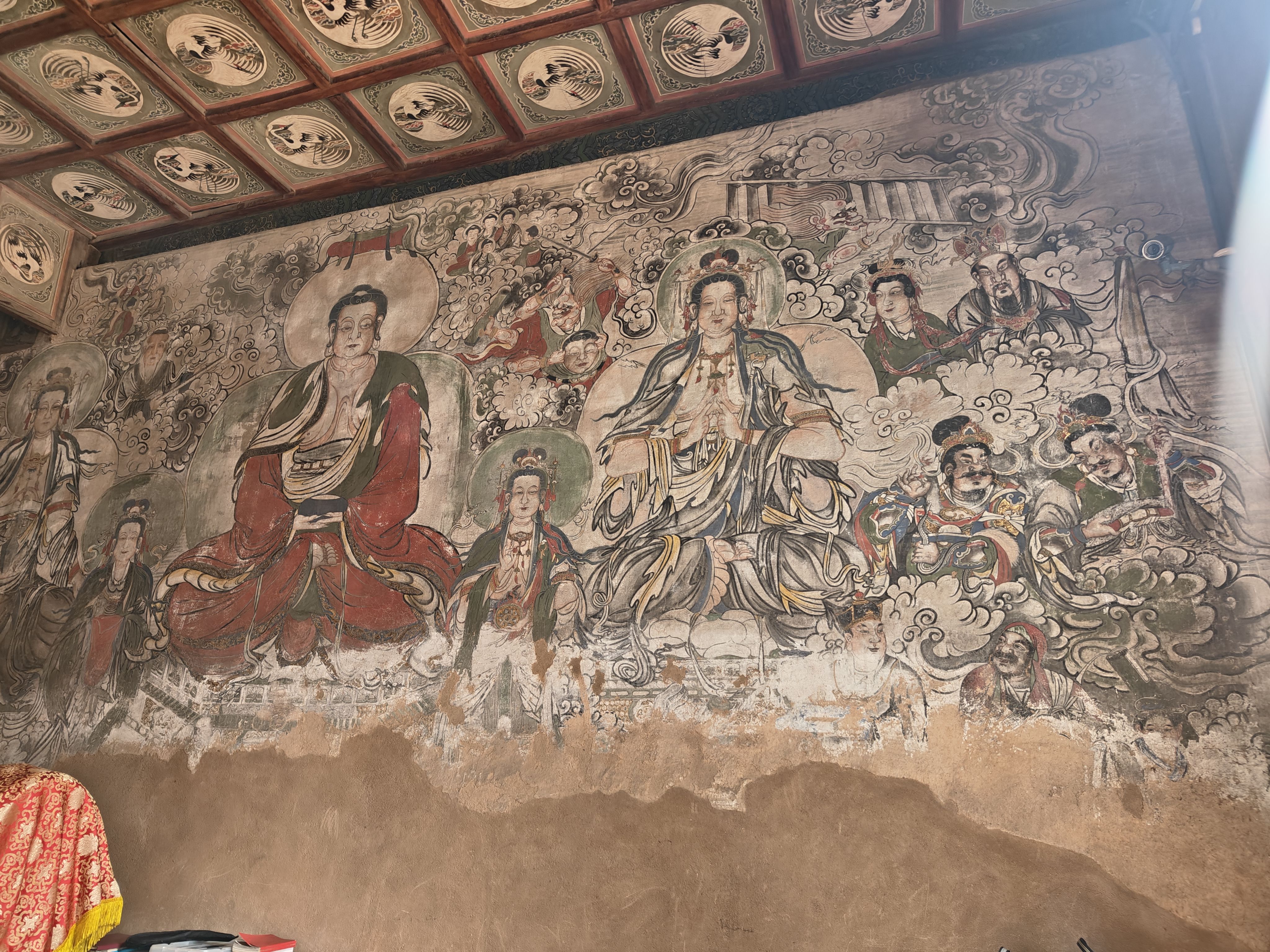 壁画:大雄宝殿、药师殿等殿内的明代壁画技法精湛,题材涵盖佛教故事、儒释道融合元素,如大雄宝殿西壁的《帝后礼佛图》中出现唐太宗与关公形象,体现了明代宗教艺术的多元融合。