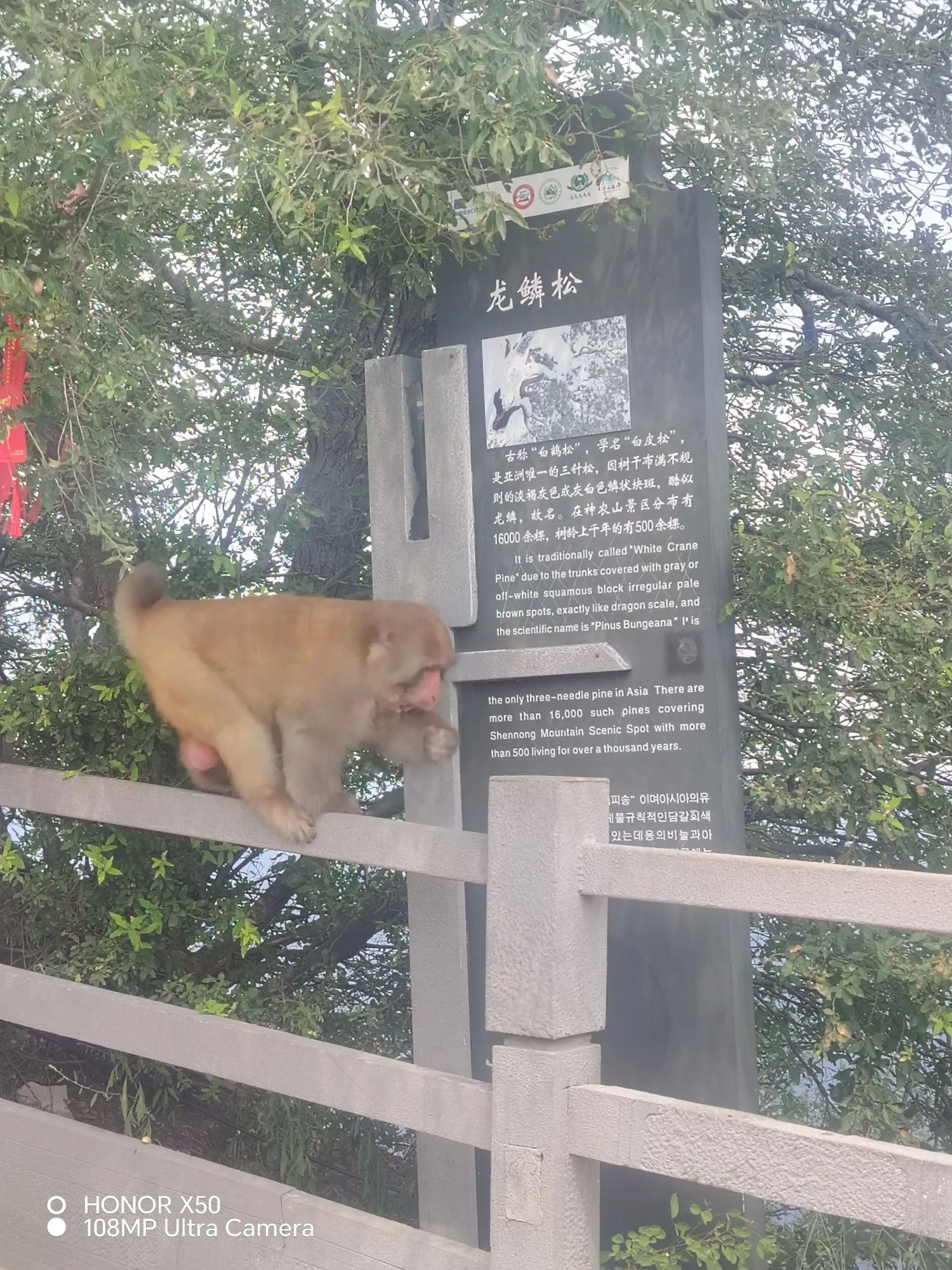 神农山的白皮松的确颇有特色,长在悬崖峭壁之间,树身虬劲嶙峋,树枝笔直向上,树叶稀少而呈针形,和寻常松树树叶一样。树皮白色,好像是给树身刷了一层白色的涂料,故名白皮松。掰块树皮放在鼻子下,有一股淡淡的中药味。最古老的白皮松已经有3000多年树龄。[赞][赞]在攀爬龙脊长城的过程中,野生猕猴群忽现身侧,竟然跟随着我们行进了好长一段路。它们没有抢夺游客手中的食物,也没有刻意去攻击人类,而是与游客们和平相处。偶尔会跳到树上去摘树上的野果,相互之间还会追逐嬉闹#神农山旅游# ,给游客增添了无穷乐趣。[微笑][微笑]